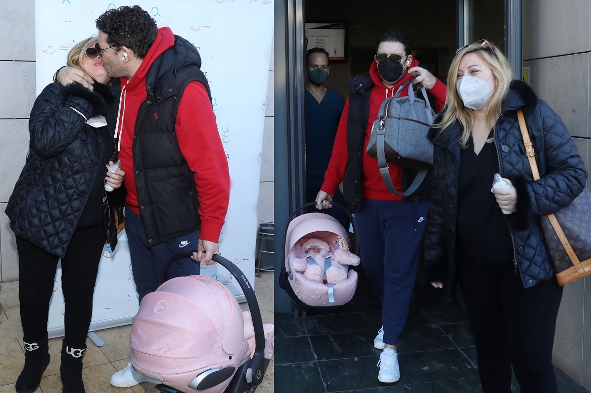 Εξιτήριο από το μαιευτήριο για την οικογένεια Μπιθικώτση – Το φιλί του τραγουδιστή στη σύζυγό του