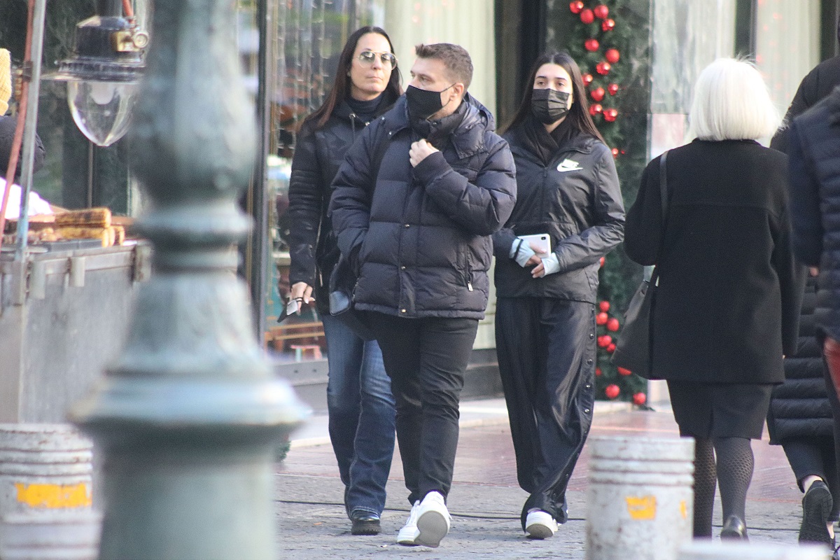 Ο Γιάννης Πλούταρχος βρήκε ελεύθερο χρόνο και βγήκε για βόλτα στο κέντρο της Αθήνας συνοδευόμενος από τη σύζυγό του, Μαρία και τη μεγάλη τους κόρη, Κατερίνα.