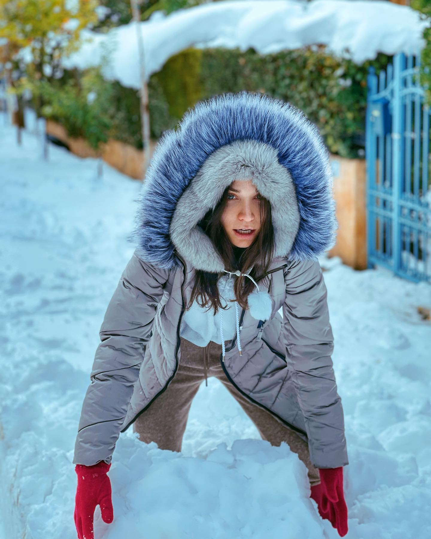 Ντύθηκε σαν να πήγαινε για σκι σε χιονοδρομικό κέντρο και έπεφτε στα χιόνια χαμογελώντας και παίζοντας σαν μικρό παιδί. Στη συνέχεια η ηθοποιός πόσταρε φωτογραφίες και βίντεο στο Instagram.