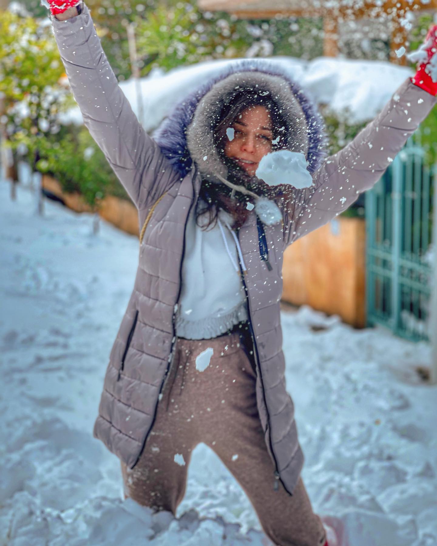 Η Κατερίνα Γερονικολού απόλαυσε το παιχνίδι στα χιόνια στη γειτονιά της στου Παπάγου.