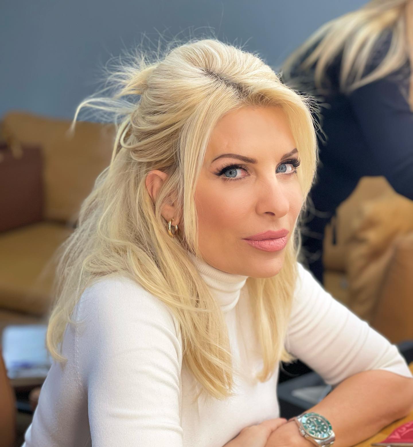 Η Ελένη Μενεγάκη μετά το τέλος της εκπομπής της τη Πέμπτη πριν φύγει για το σπίτι της πόζαρε για μια φωτογραφία.