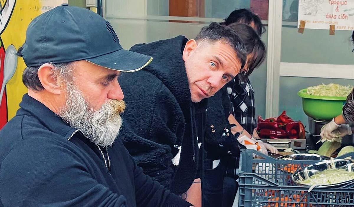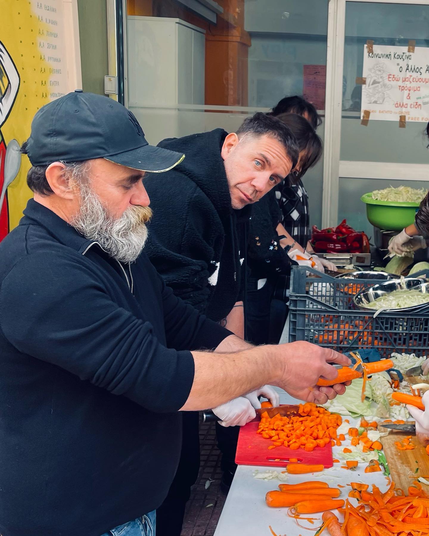 Ο δημοφιλής καλλιτέχνης, που αυτή την εποχή συνεχίζει τις sold out εμφανίσεις της μουσικής παράστασής του «Η Αθήνα τη νύχτα» στο Κέντρο Αθηνών, βρέθηκε στην περιοχή του Κεραμεικού μαζί με άλλους εθελοντές της κοινωνικής κουζίνας «Ο άλλος άνθρωπος» και βέβαια τον Κωνσταντίνο Πολυχρονόπουλο, ο οποίος είναι και ο εμπνευστής της εν λόγω μη κερδοσκοπικής πρωτοβουλίας, μαγειρεύοντας όλοι μαζί για τον κόσμο που έχει ανάγκη από ένα πιάτο με ζεστό φαγητό.