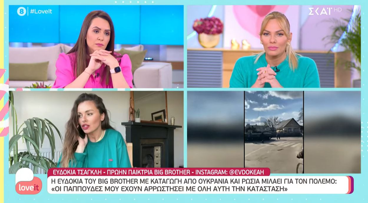 Η Ευδοκία Τσάγκλη που γνωρίσαμε μέσα από τη συμμετοχή του «Big Brother» μίλησε στην εκπομπή «Love it» για τους δικούς της ανθρώπους που ζουν στην Ουκρανία.
