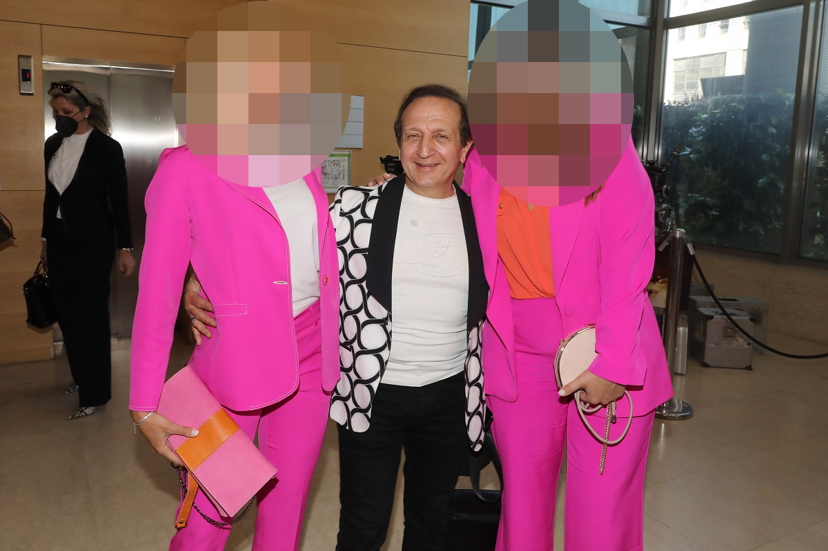 Επέλεξαν κομψό, ροζ κοστούμι και πόζαραν ακομπλεξάριστες στον φωτογραφικό μας φακό παρέα με τον Σπύρο Μπιμπίλα. Η Ιωάννα Μαλέσκου και η Ελίνα Παπίλα δεν περίμεναν πως θα φορούσαν το ίδιο χρώμα κοστούμι ωστόσο δεν τις ενόχλησε αλλά αντιθέτως συνομίλησαν και φωτογραφήθηκαν παρέα.