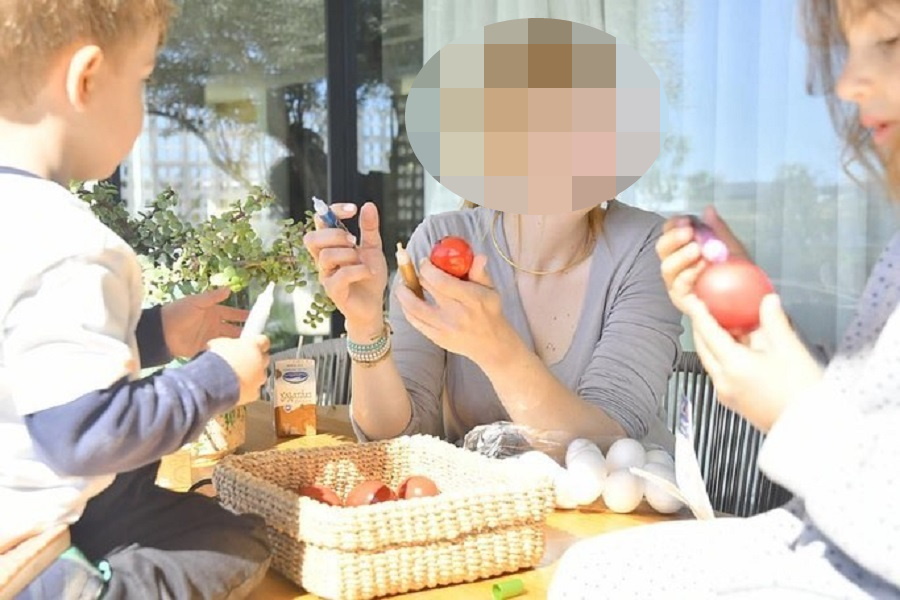 Η παρουσιάστρια βγήκε στον κήπο της και έβαψε τα αβγά με την κόρη και το γιο της.