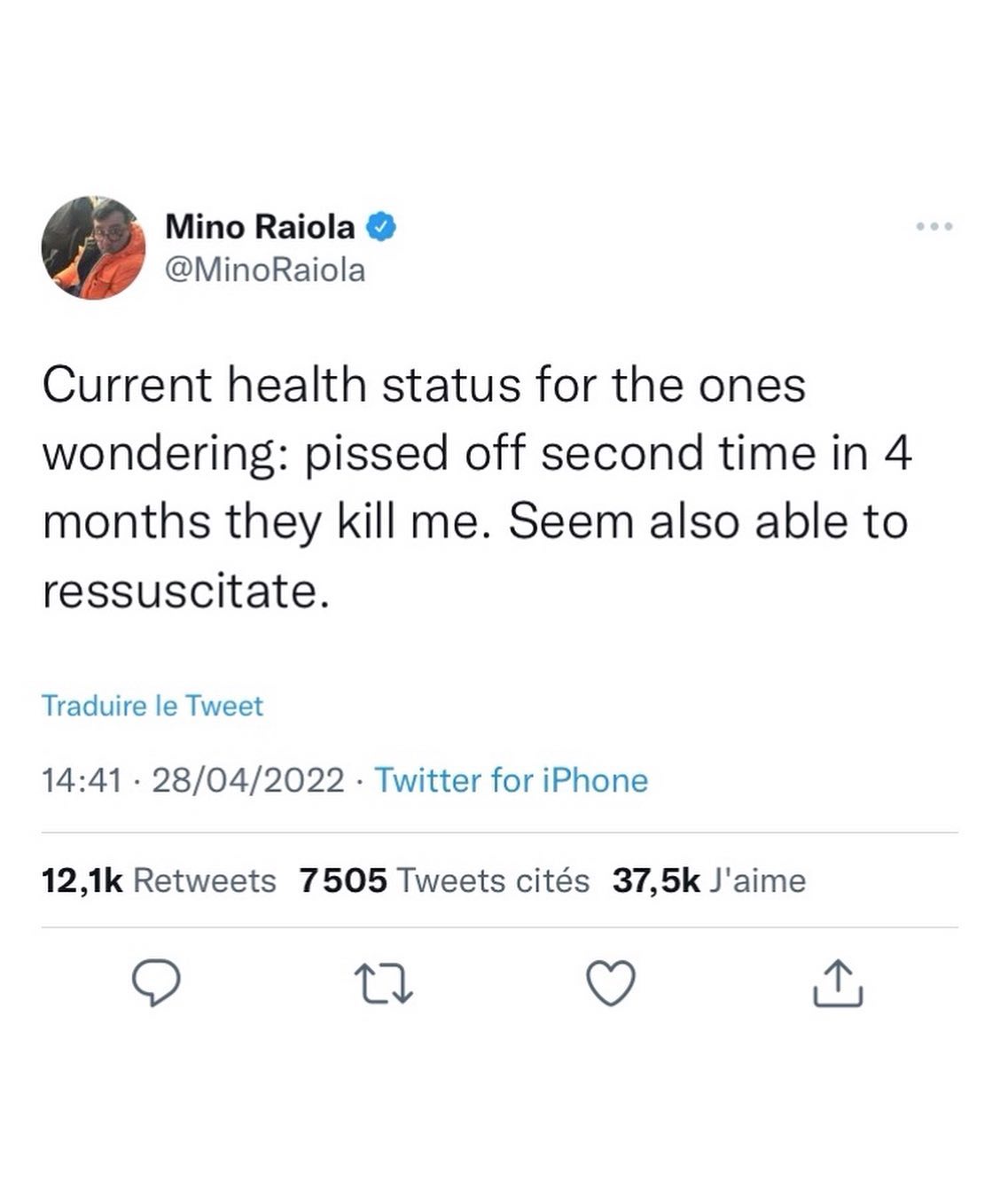 Ο 54χρονος υπήρξε μάνατζερ μεγάλων ονομάτων όπως οι οι Μπαλοτέλι, Ζλάταν Ιμπραΐμοβιτς, Πολ Πογκμπά, Έρλινγκ Χάαλαντ. Ο Μίνο Ραϊόλα ξέσπασε με ένα μήνυμα στα social media που ανέφερε: «Για όσους αναρωτιούνται για την κατάσταση της υγείας μου, είμαι εκνευρισμένος καθώς για δεύτερη φορά μέσα σε τέσσερις μήνες. Μάλλον τους αναζωογονεί».