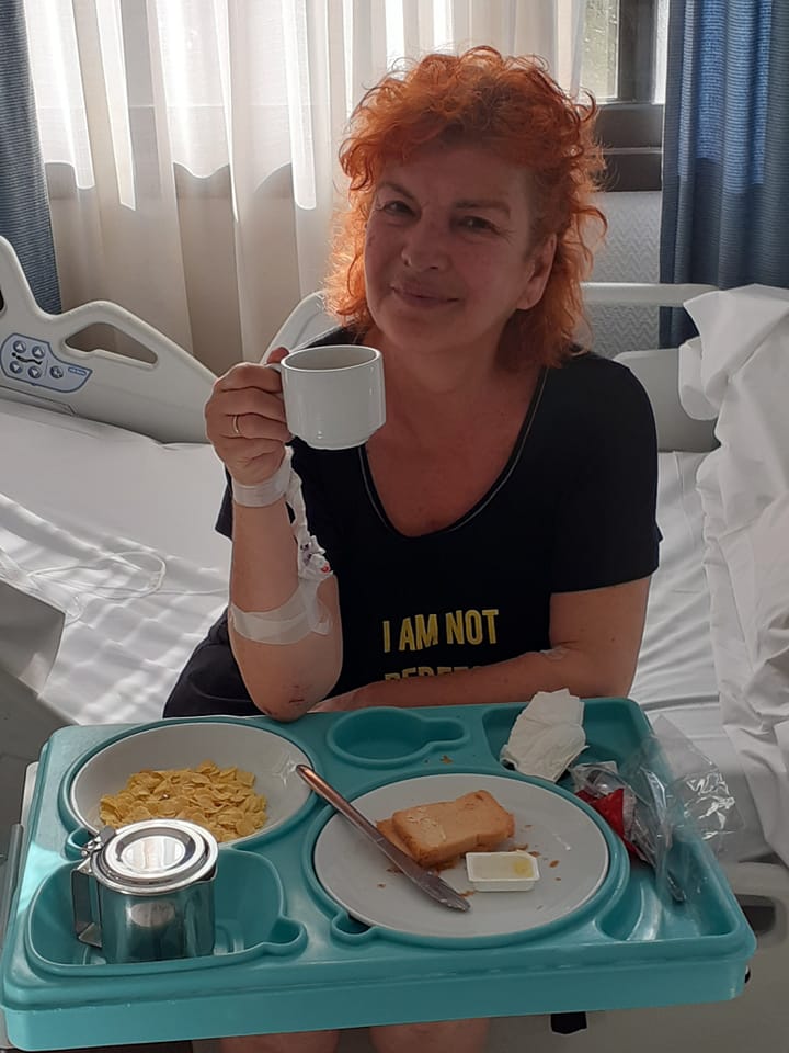 Η καταξιωμένη ηθοποιός πόσταρε φωτογραφία στο facebook μέσα από το δωμάτιο του νοσοκομείου να τρώει και έγραψε: «Πάντα με αισιοδοξία». Δεν αποκάλυψε το λόγο που βρίσκεται στο νοσοκομείο αλλά το χαμόγελό της δείχνει πως δεν πρέπει να είναι κάτι ανησυχητικό. Της ευχόμαστε περαστικά και γρήγορα!!
