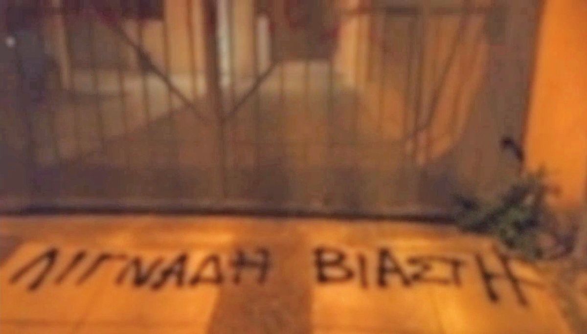 του Δημήτρη Λιγνάδη στον Αγιο Παύλο, όπου έγραψαν «Λιγνάδη βιαστή» μπροστά από