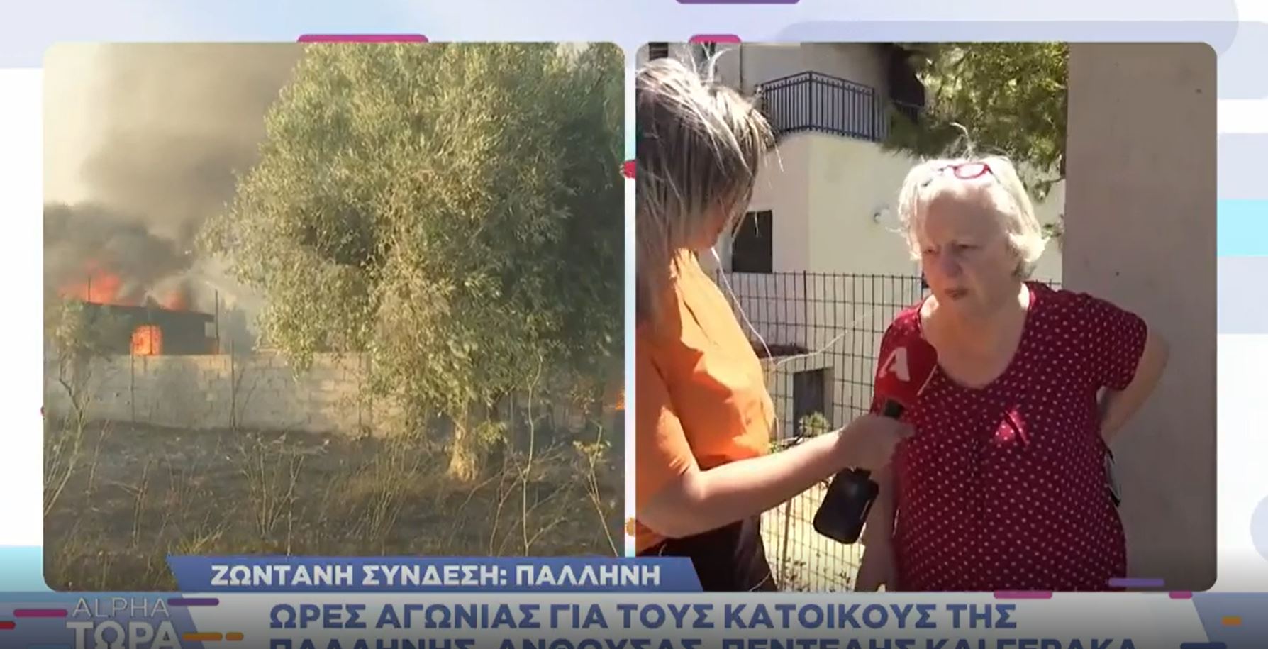 Η Ελένη Γερασιμίδου ζει δύσκολες στιγμές καθώς το σπίτι της στην Παλλήνη κάηκε από την πύρινη λαίλαπα που σαρώνει τη βορειανατολική Αττική.