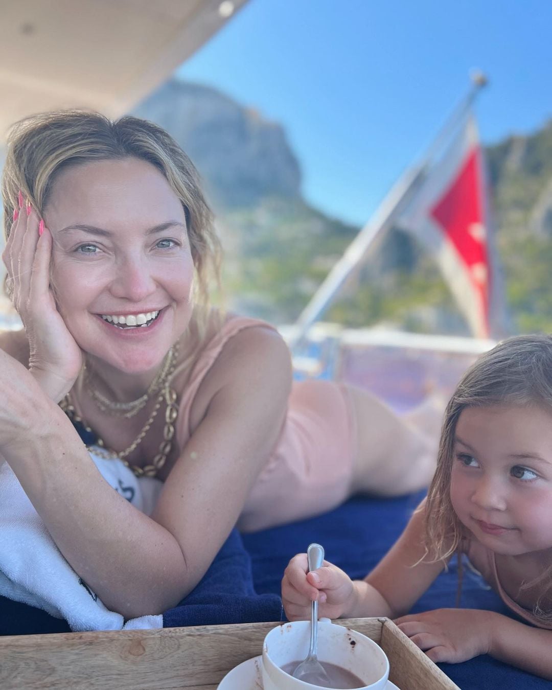 Η 43χρονη ηθοποιός βρίσκεται στην Ιταλία και γυρίζει από μέρος σε μέρος εξερευνώντας παραλίες. Στη συνέχεια η Κέιτ Χάντσον δημοσίευσε φωτογραφίες στο Instagram να κολυμπάει με τη κορούλα της.