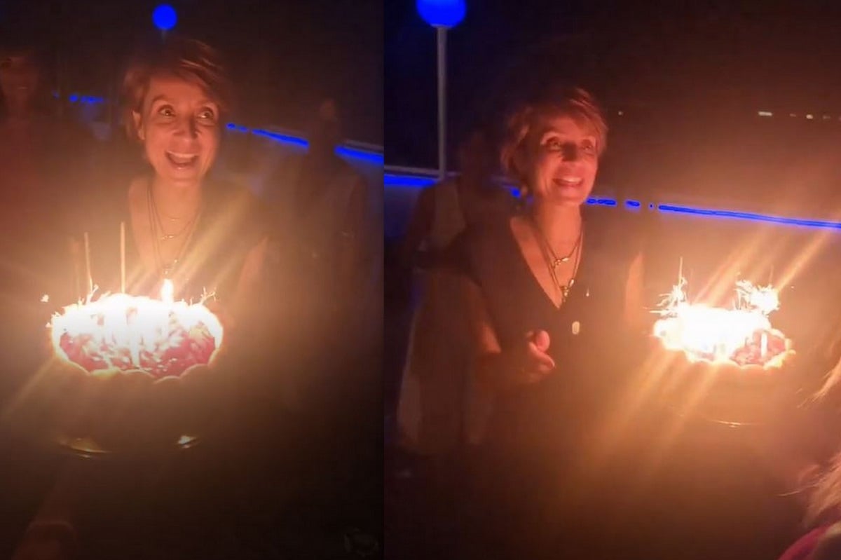 Μόλις είδε τη τούρτα σαν μικρό παιδί χάρηκε και αφού έκανε μια ευχή στη συνέχεια έσβησε τα κεράκια της. Η Ευδοκία Ρουμελιώτη γιόρτασε τα 44α της γενέθλια παρέα με αγαπημένα της πρόσωπα.