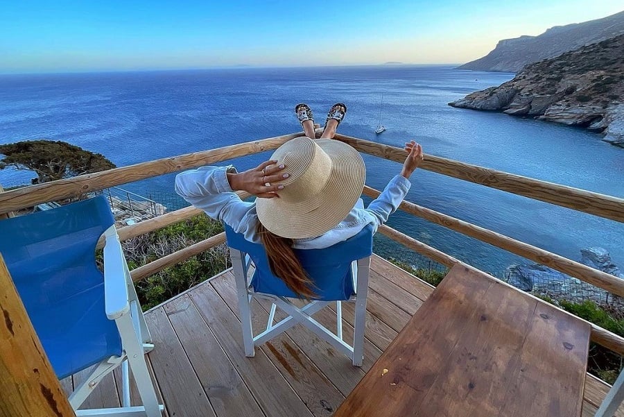 Πόσταρε φωτογραφία της στο Instagram να χαλαρώνει σε ένα εκπληκτικό μπαλκόνι που είχε «πιάτο» όλο το Αιγαίο και έγραψε στη λεζάντα η Αποστολία Ζώη: «Πώς να μην «αδειάσεις» σ’ αυτό το μπαλκόνι.