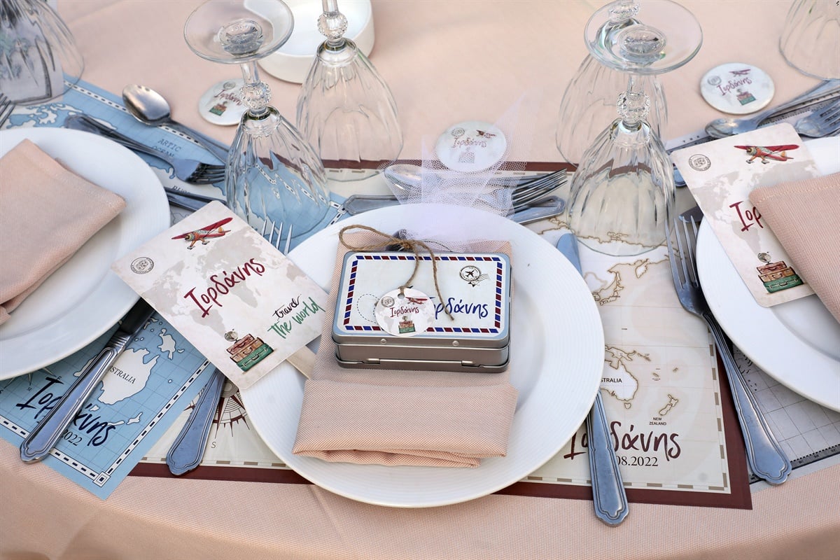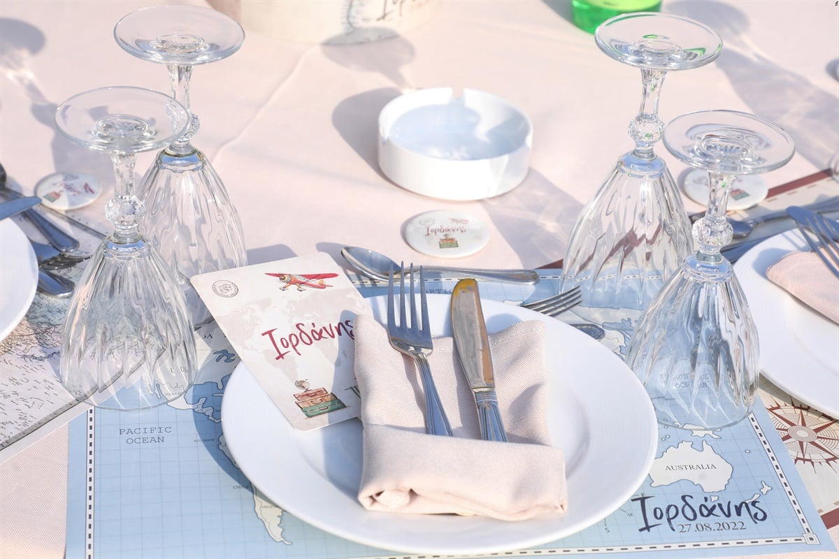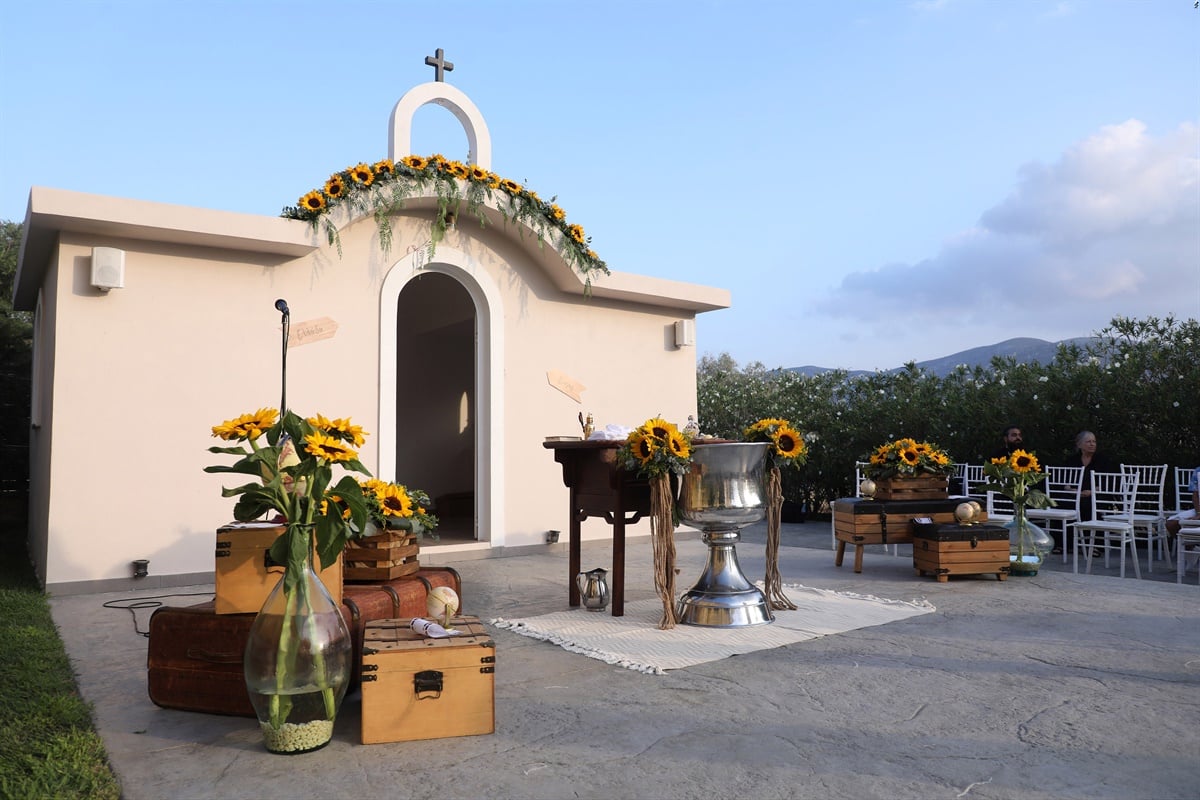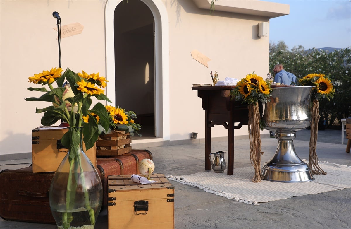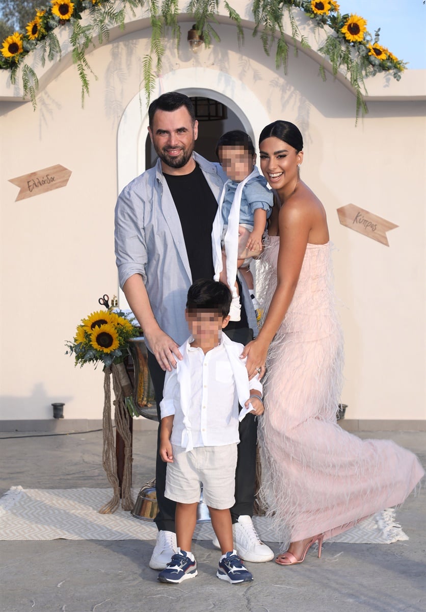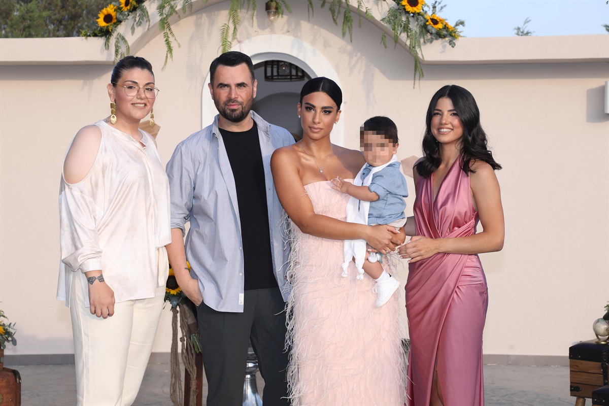 Νονές ήταν δυο καλές φίλες του ζευγαριού, ενώ ο στολισμός ήταν θεματικός, με κατακίτρινους, τεράστιους ήλιους να στολίζουν τόσο την κολυμπήθρα όσο και τον περιβάλλοντα χώρο στον ιερό ναό.