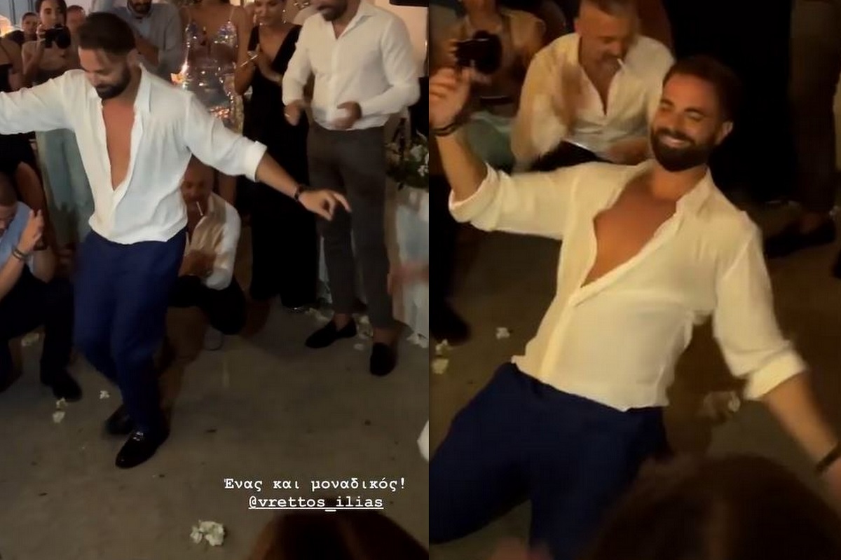 Ο Ηλίας Βρεττός στη δεξίωση του γάμου του δεν σταμάτησε να χορεύει.