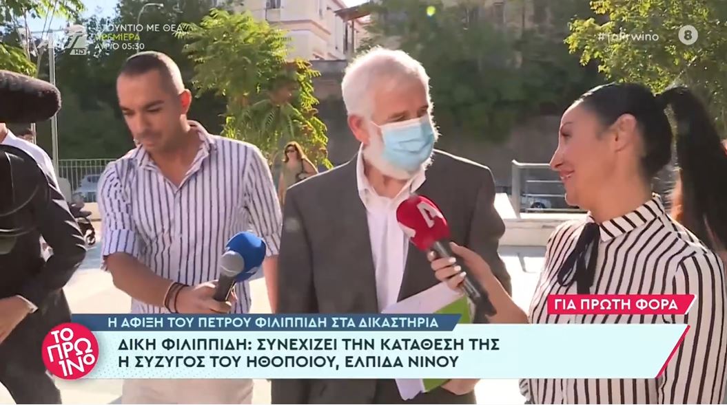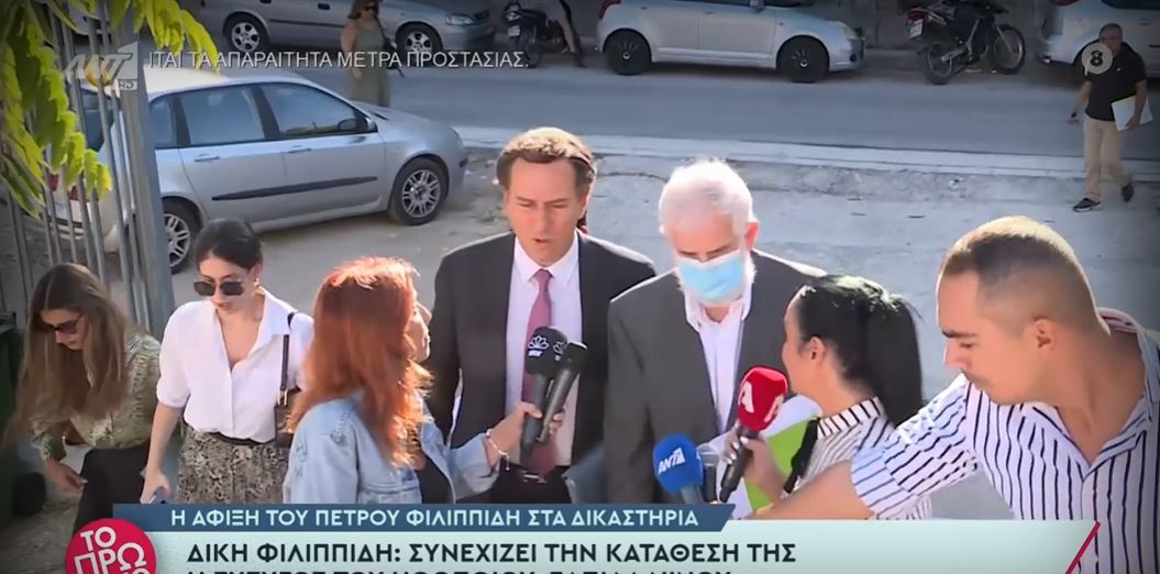 Ο Πέτρος Φιλιππίδης νωρίς το πρωί της Παρασκευής έφτασε στα δικαστήρια κρατώντας φακέλους συνοδευόμενος από τη σύζυγό του, Ελπίδα Νίνου και έναν εκ των δικηγόρων του τον Μιχάλη Δημητρακόπουλου.
