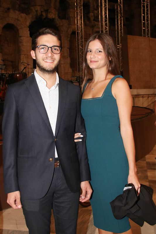 Πρόκειται για τον Αλέξανδρο και την Αλίκη Καραμανλή που έφτασαν στο Ηρώδειο με τη μητέρα τους, Νατάσα Παζαϊτη.