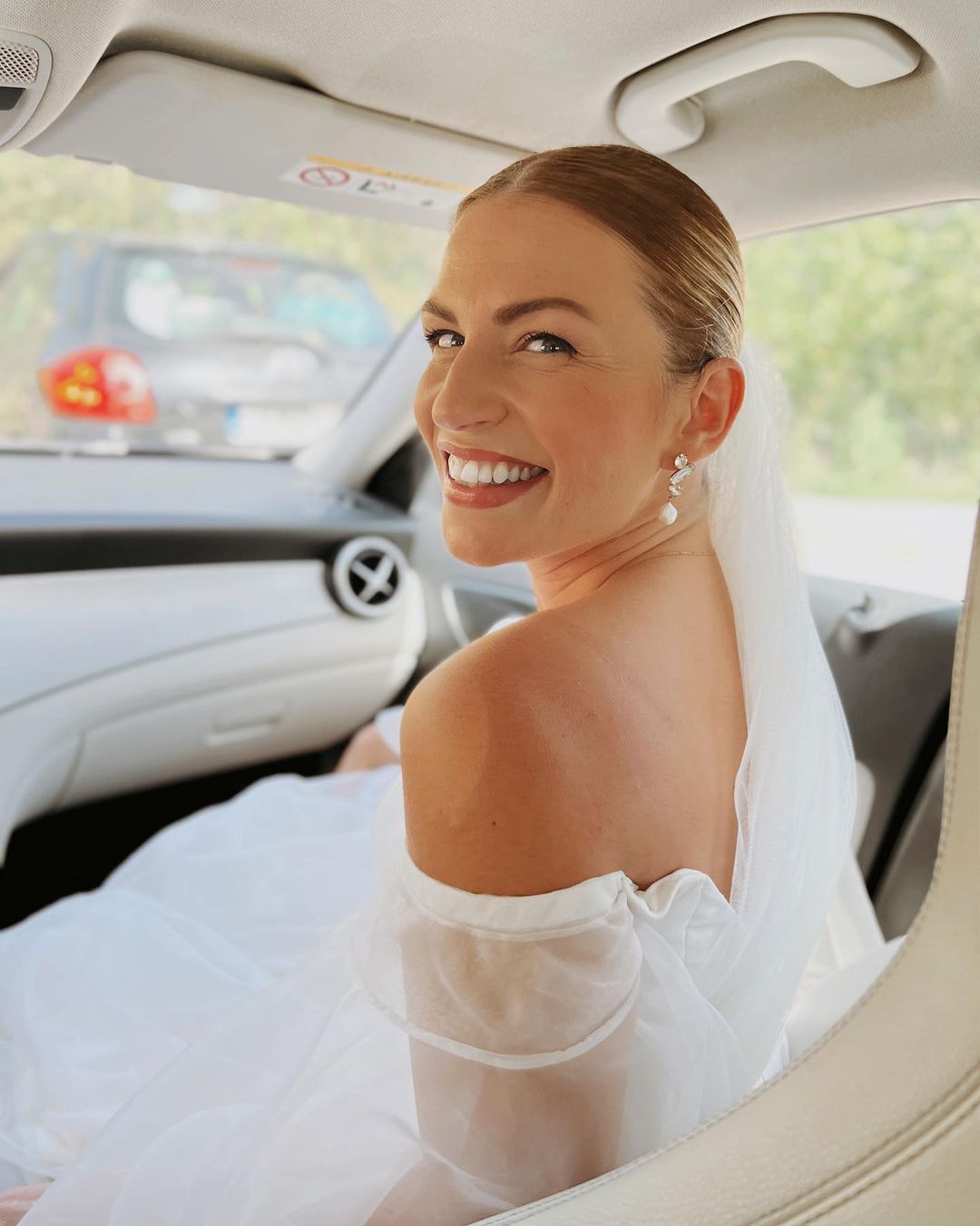 Η Ειρήνη Ψυχράμη επέλεξε ένα πολύ ωραίο νυφικό, πριγκιπικού στιλ με πέπλο και έλαμπε από ευτυχία.