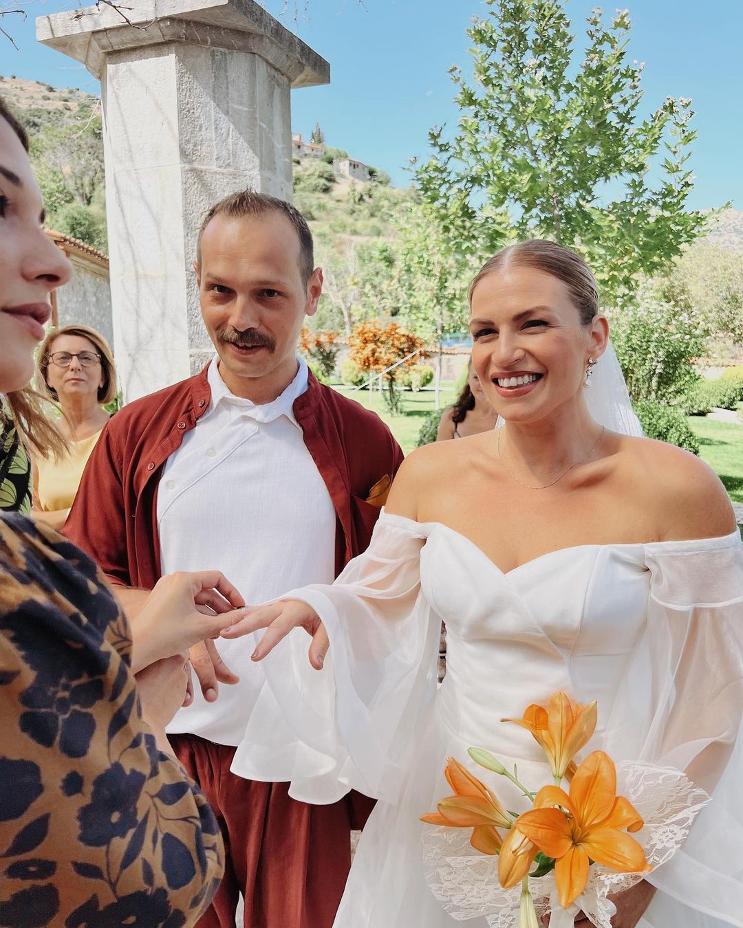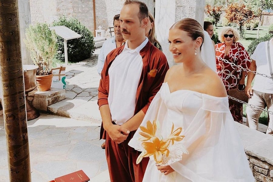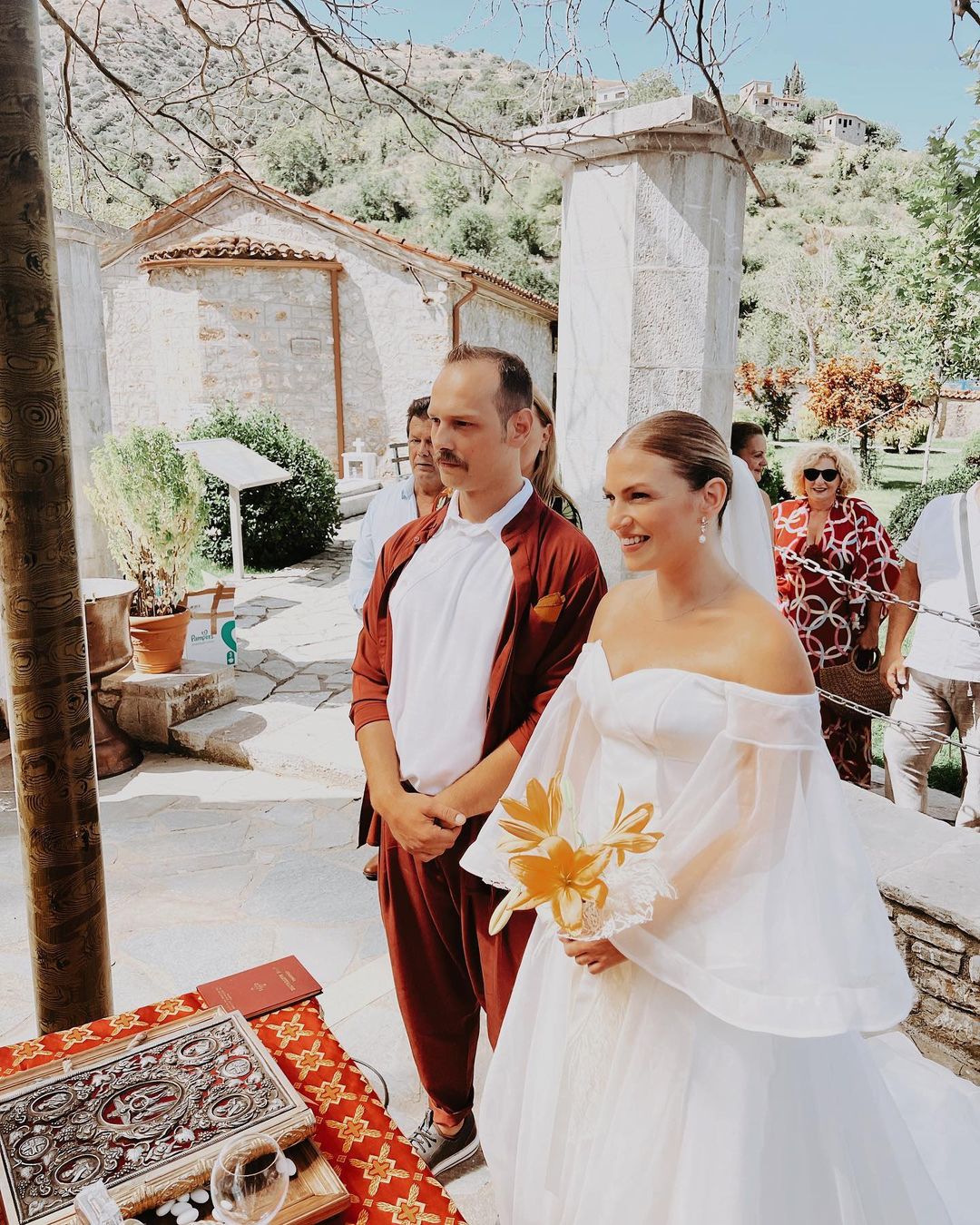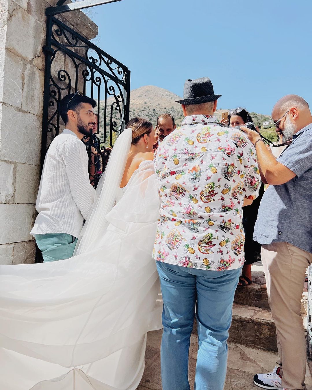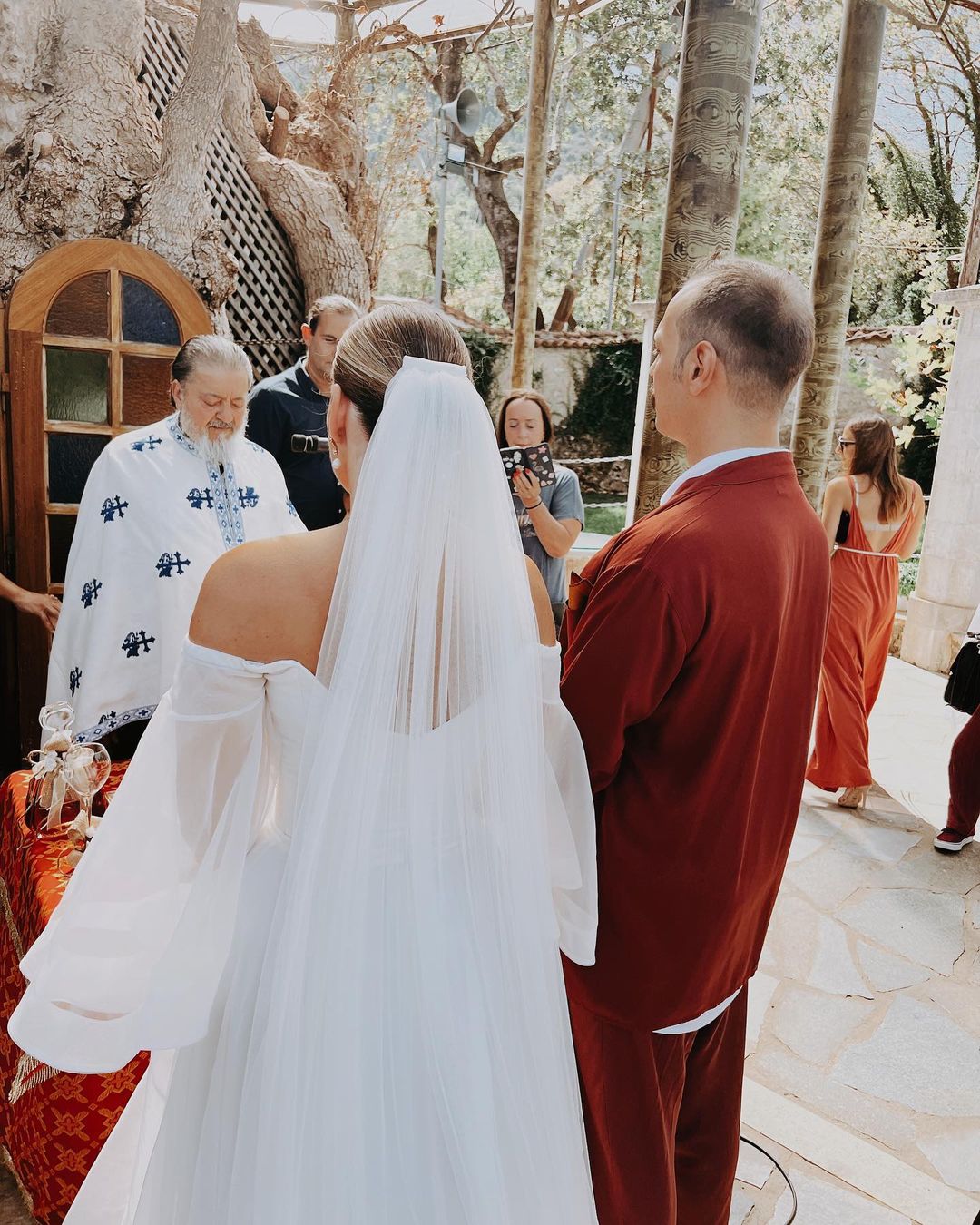Σύμφωνα με αποκλειστικές πληροφορίες ο πέρα από το γάμο θα γινόταν και η βάπτιση του γιου τους. Ο γαμπρός επέλεξε να φορέσει κάτι πιο αέρινο και μοντέρνο και όχι το κλασικό κοστούμι.