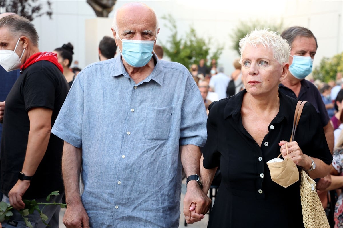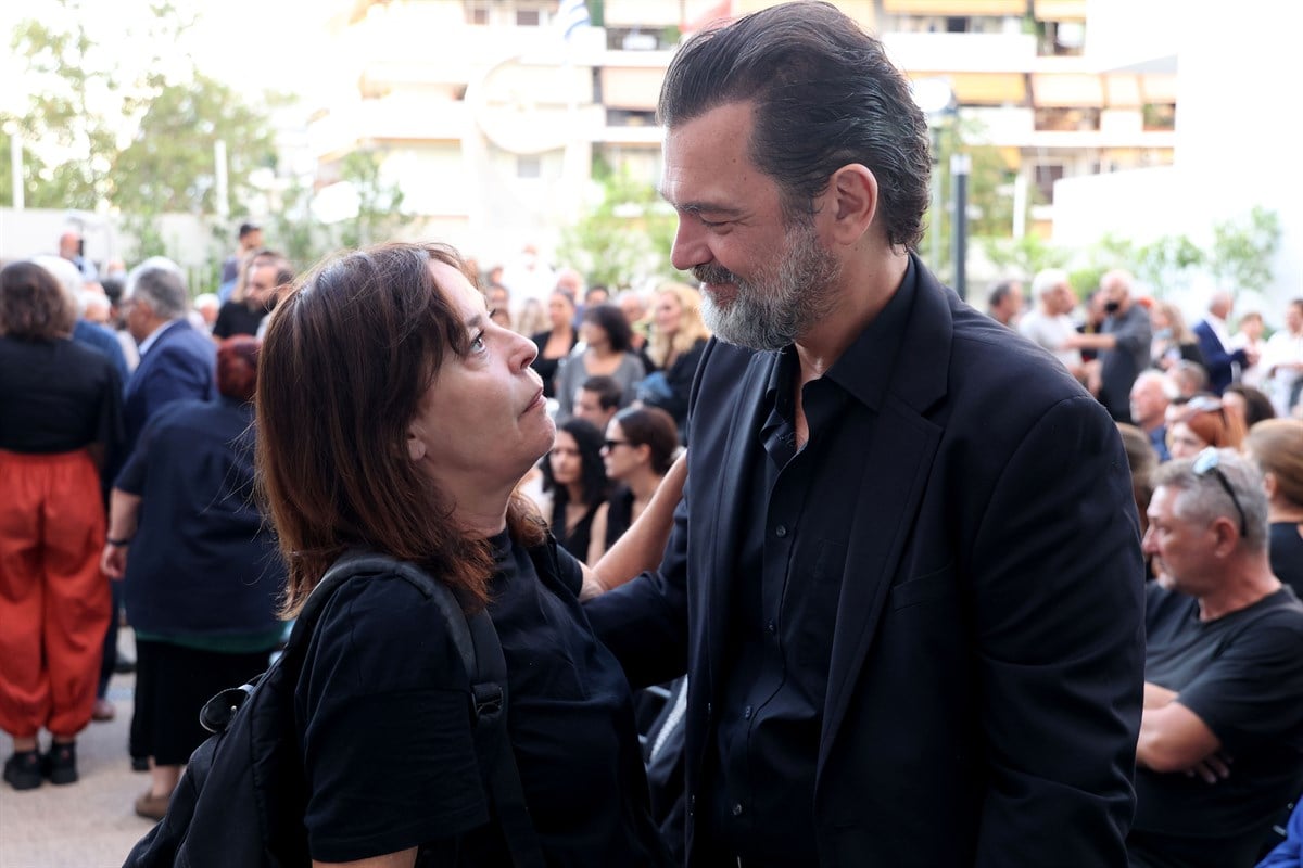 Πλήθος κόσμου έδωσε το «παρών» με συγκινητική στιγμή τη σύζυγο του Κώστα Καζάκου να ξεσπάει σε κλάματα στην αγκαλιά του Άγγελου Αντωνόπουλου.