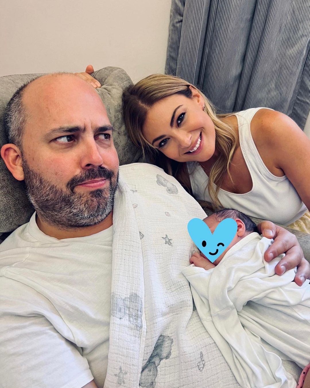 Στο πλευρό του η καλή του φίλη και κουμπάρα, Δέσποινα Καμπούρη που έσπευσε να πάει στο μαιευτήριο και δημοσίευσε φωτογραφίες στο Instagram γράφοντας: «Δεν ξέρω αν το μάθατε αλλά… γεννήσαμε. Ο Μανούκος μου έγινε μπαμπάς κι εγώ ακόμα δε μπορώ να πιστέψω ότι κρατάμε στην αγκαλιά μας την κόρη του (μας)! Χριστίνα μου ξέρω ότι είσαι μια φανταστική μαμά… Σ’ ευχαριστώ για το δώρο που μας έκανες! Σε αγαπάμε! Σας αγαπάω!».