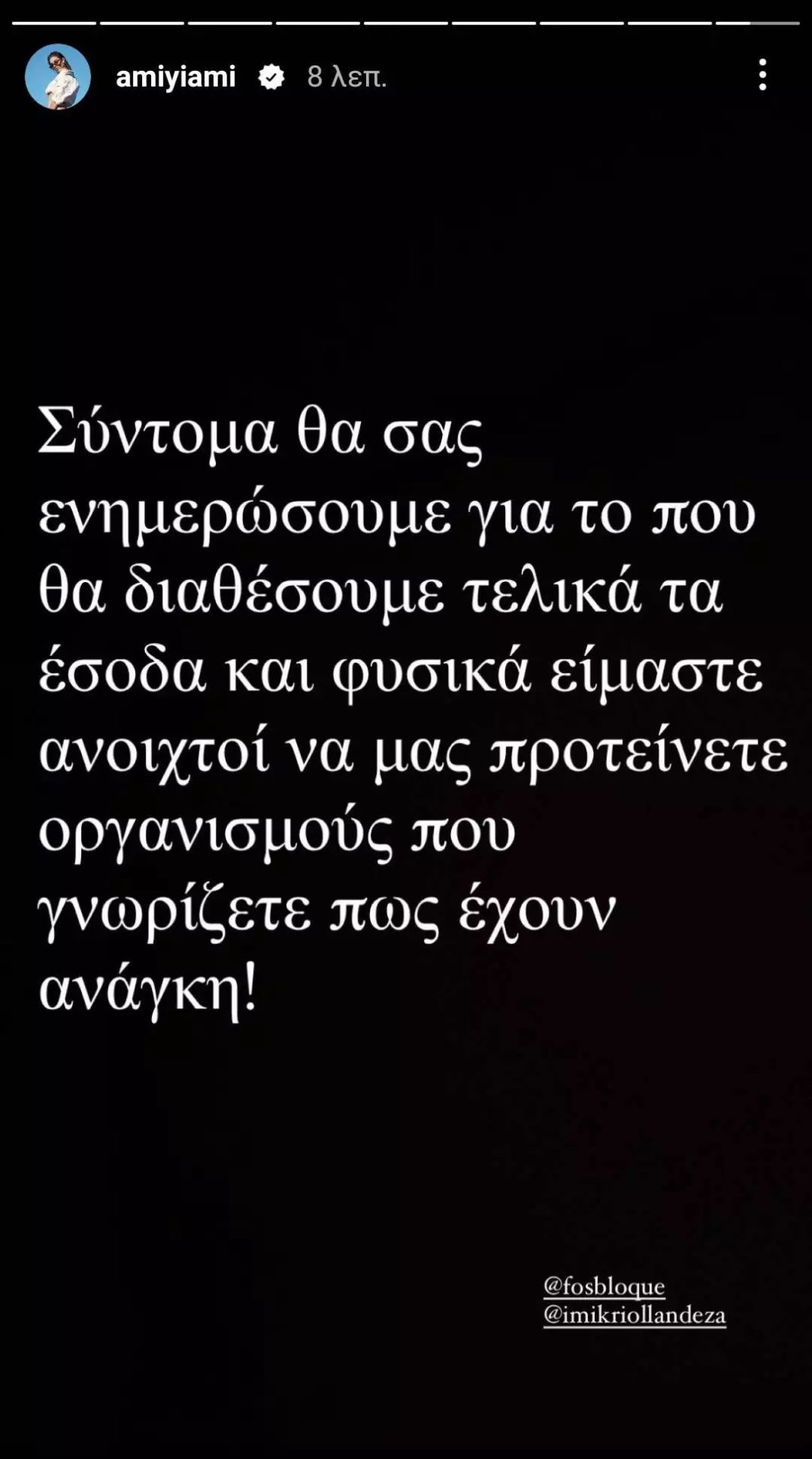 Σύντομα θα σας ενημερώσουμε για το που θα διαθέσουμε τελικά τα έσοδα και φυσικά είμαστε ανοιχτοί να μας προτείνετε οργανισμούς που γνωρίζετε πως ίσως έχουν ανάγκη».