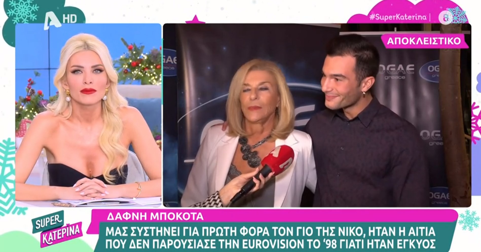 «Θα μπορούσα να επιστρέψω στη Eurovision αν με ενδιέφερε. Δεν με ενδιαφέρει καθόλου να δώσω βαθμολογία, θα με ενδιέφερε όμως πολύ να είμαι στην επιλογή του τραγουδιού, θα μπορούσε να βοηθήσει η εμπειρία μου», είπε στην αρχή η Δάφνη Μπόκοτα και στη συνέχεια μας σύστησε για πρώτη φορά τον γιο της, Νίκο, ο οποίος σπουδάζει υποκριτική.