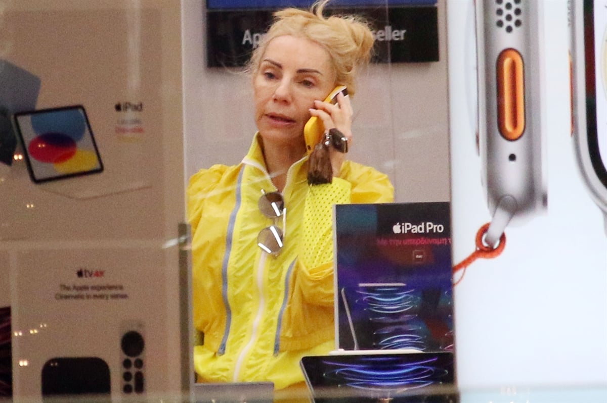 Η γνωστή ηθοποιός ντυμένη με φόρμες και χωρίς ίχνος μακιγιάζ επισκέφθηκε εμπορικό κέντρο στο Μαρούσι και την εντοπίσαμε σε κατάστημα κινητής τηλεφωνίας.