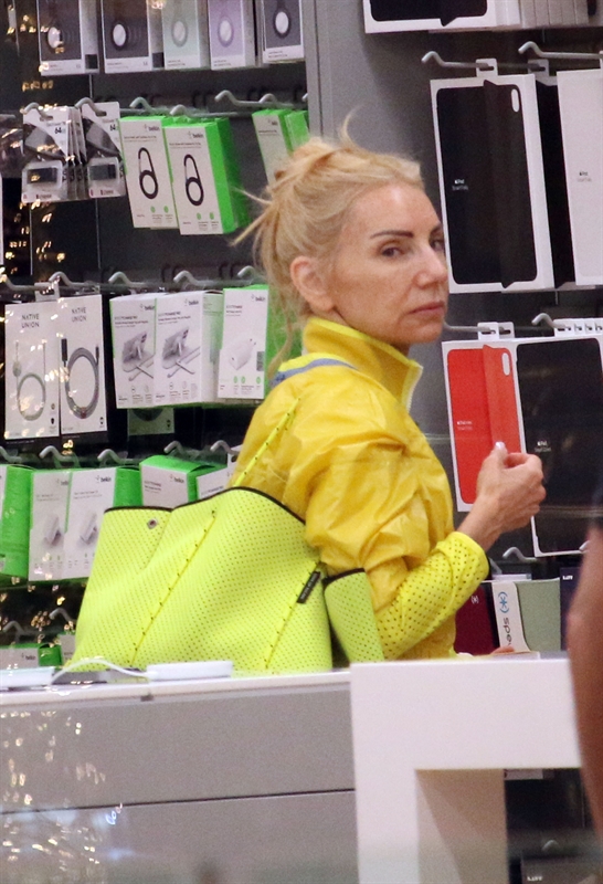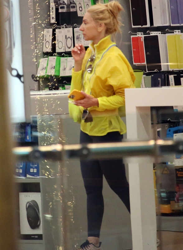 Ο φωτογραφικός μας φακός την απαθανάτισε να κοιτάζει για θήκες κινητών αλλά και να μιλάει στο τηλέφωνό της προφανώς για επαγγελματικούς λόγους.