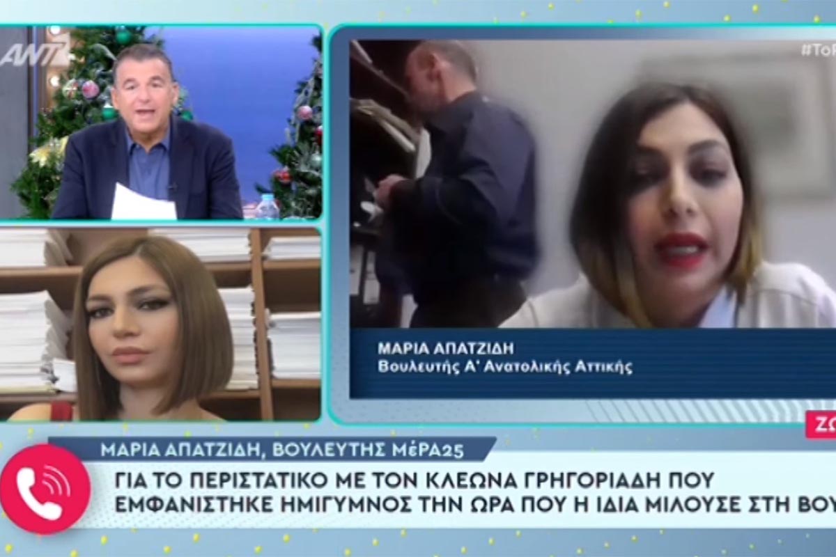 Η βουλευτής του ΜέΡΑ 25 Μαρία Απατζίδη κλήθηκε να απαντήσει μέσω της εκπομπής «Το Πρωινό» για το «στριπτιζ» του Κλέωνα Γρηγοριάδη την ώρα που βρισκόταν σε ζωντανή σύνδεση από τα γραφεία του ΜέΡΑ 25.