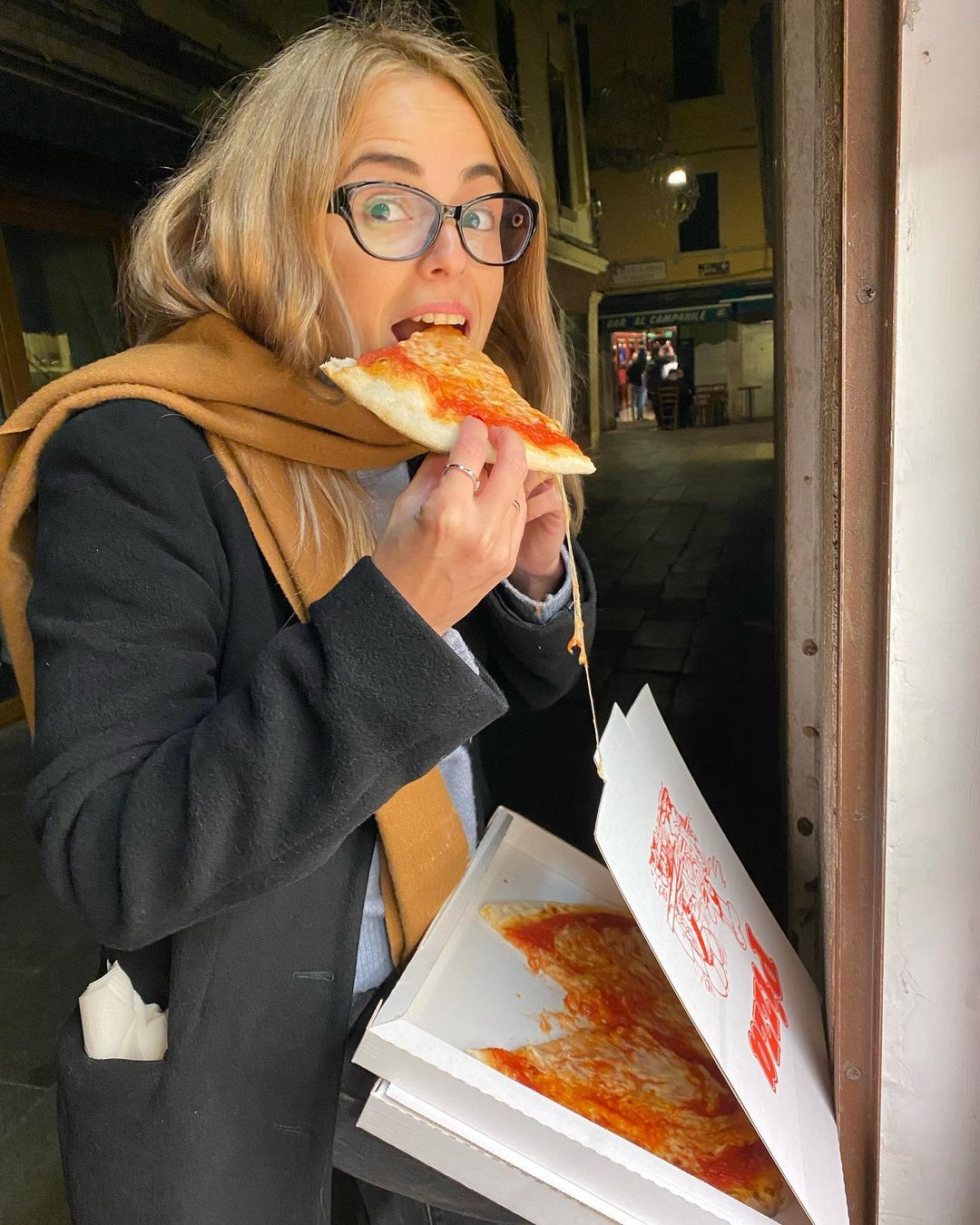 Μάλιστα, σε μία εικόνα, με ένα λαχταριστό τιραμισού σε πρώτο πλάνο, διακρίνονται στο φόντο γυναικεία χέρια με κόκκινα περιποιημένα νύχια, που, όπως φαίνεται σε μια άλλη φωτογραφία που αναρτήθηκε, ανήκουν στη νεαρή ηθοποιό.
