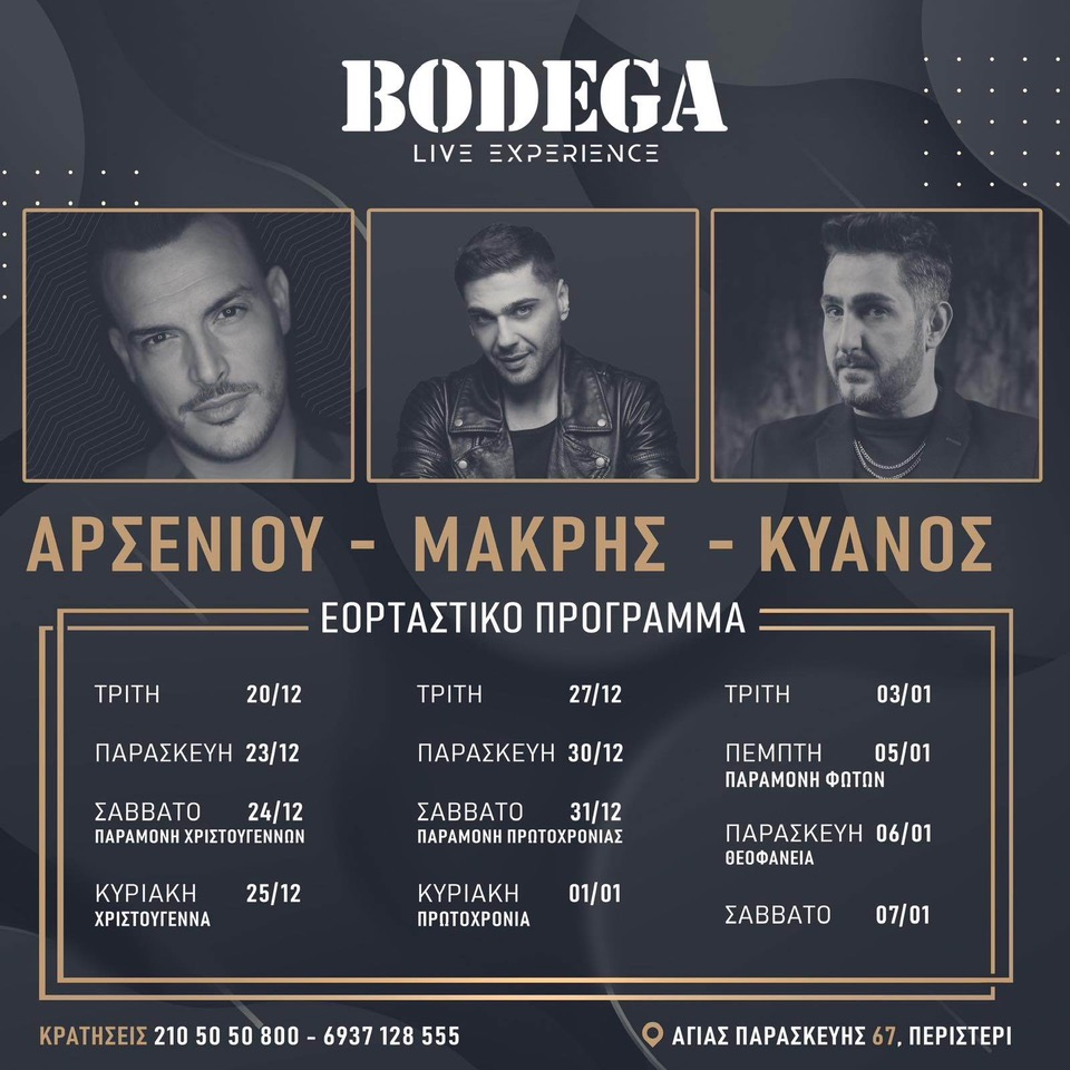 Αρσενίου-Μακρής-Κυανός σε non stop εορταστικό πρόγραμμα στο Bodega