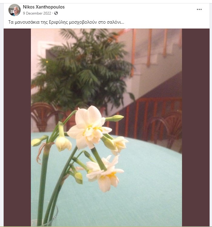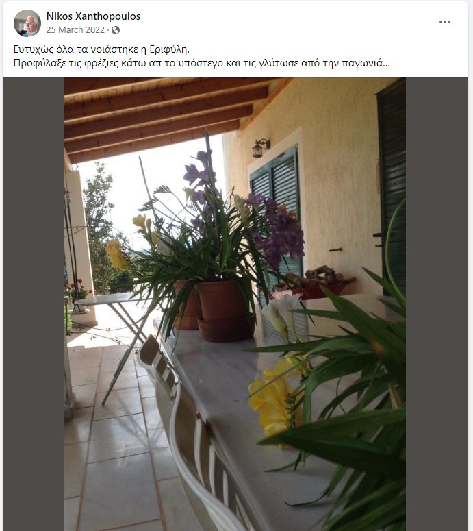 Αυτό ήταν κάτι που του στοίχησε και του δημιουργήθηκαν τα καρδιολογικά προβλήματα. Πριν την περιπέτεια υγείας της συζύγου του πόσταρε συχνά φωτογραφίες τους από την καθημερινότητά τους αλλά και από τα λουλούδια που εκείνη φύτευε.