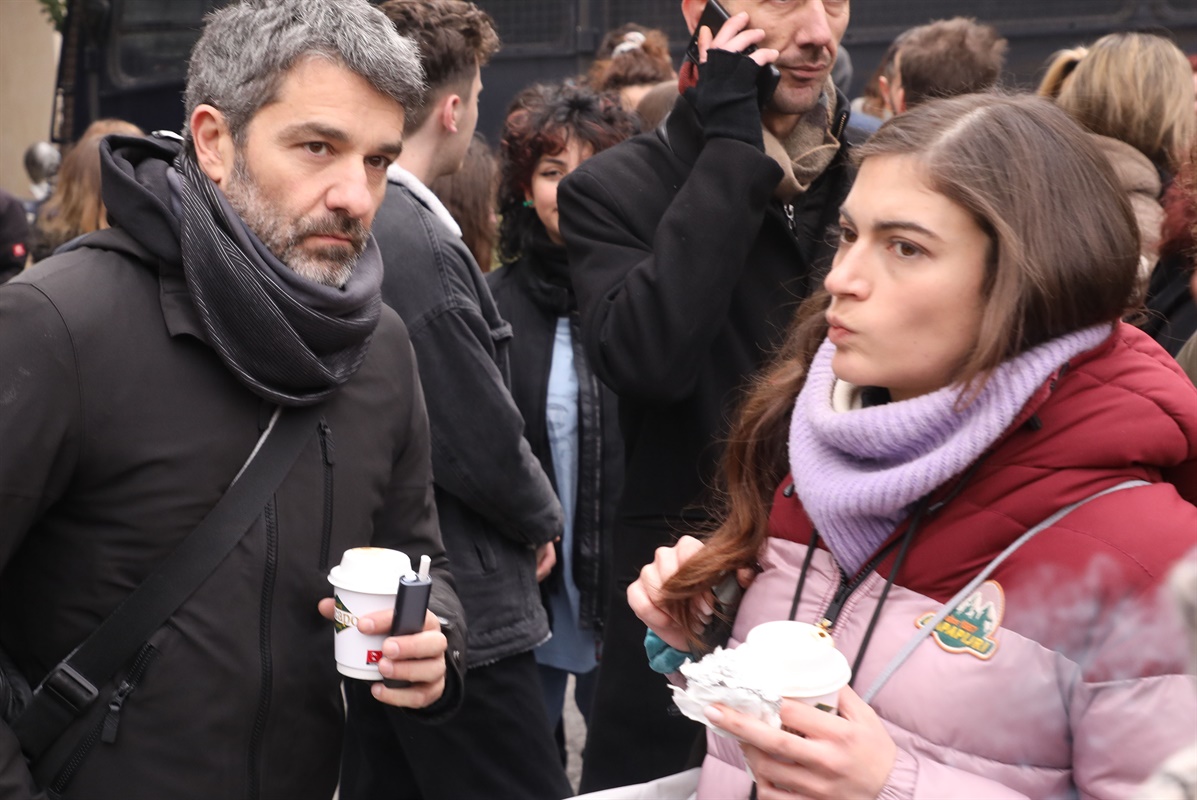 Το ζευγάρι άφησε για λίγο τα γυρίσματα της σειράς «Παγιδευμένοι» και κατέβηκε στο κέντρο για να βρεθεί στο πλευρό των συναδέλφων του.