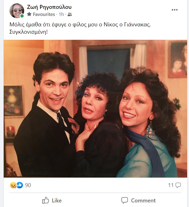 Η Γωγώ Ατζολετάκη πόσταρε κοινή τους φωτογραφία και έγραψε: «ΑΔΙΑΝΟΗΤΟ !!! Ο Νίκος δεν είναι πια ανάμεσά μας.