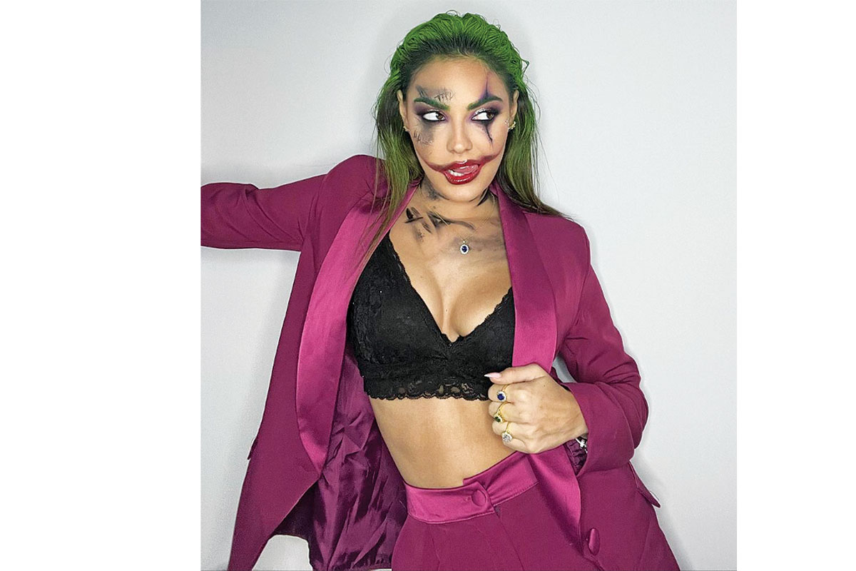 Οπως φαίνεται από τα στιγμιότυπα που ανάρτησε στο Instagram, μεταμφιέστηκε σε Τζόκερ από την ομώνυμη ταινία, δίνοντας ωστόσο μια sexy διάσταση στον ήρωα που υποδύθηκε ο Χοακίν Φοίνιξ. Εχοντας βάψει τα μαλλιά της πράσινα και με έντονο κόκκινο κραγιόν πέρα από τα όρια των χειλιών της πόζαρε μέσα στο φούξια κοστούμι της, το οποίο συνδύασε ωστόσο με μαύρο δαντελωτό τοπ. «Ο,τι έκανες άδικα… Θα το πληρώσεις δίκαια!» σημείωσε στη λεζάντα.
