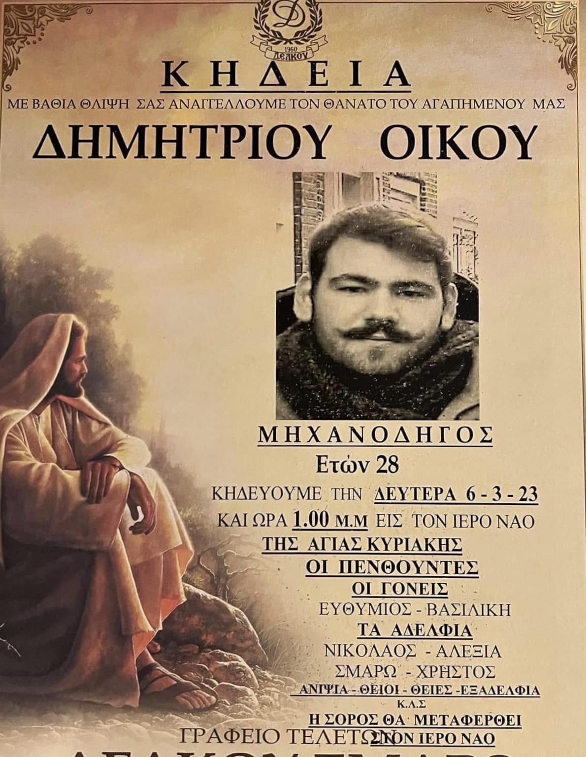 Η τελευταία πράξη του δράματος θα παιχτεί σήμερα Δευτέρα για τον αδικοχαμένο μηχανοδηγό Δημήτρη Οικού.