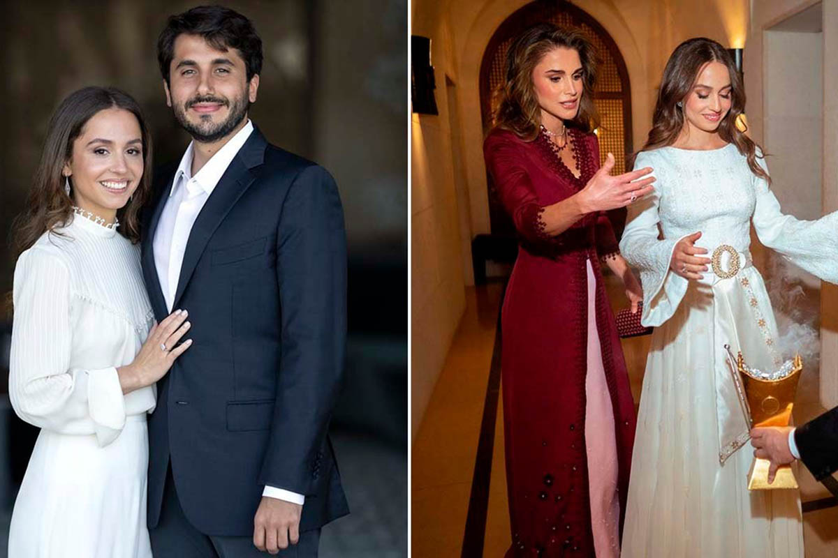 Για την ιστορία, πάντως, στην κηδεία του τέως βασιλιά Κωνσταντίνου το «παρών» έδωσαν η πρώην βασίλισσα Νουρ της Ιορδανίας, τέταρτη σύζυγος και χήρα του βασιλιά Χουσεΐν της Ιορδανίας, και η κόρη της, πριγκίπισσα Ράγια, ετεροθαλή αδερφή του βασιλιά Αμπντάλα. Στα social media, ωστόσο, η μέλλουσα νύφη εμφανίστηκε πρώτη φορά να ποζάρει φορώντας τη διαμαντένια τιάρα, οικογενειακό κειμήλιο, την οποία θα φορέσει στη γαμήλια τελετή, που πιθανότατα θα τελεστεί στο παλάτι Amman Zahran, που είναι η παραδοσιακή επιλογή της βασιλικής οικογένειας της Ιορδανίας, καθώς εκεί είχαν παντρευτεί οι γονείς της νύφης, στις 10 Ιουνίου 1993, σε μια μεγαλοπρεπή τελετή που άφησε εποχή στην Ιορδανία, κλέβοντας την παράσταση με την ομορφιά της η 22χρονη τότε κοινή θνητή Ράνια, με το νυφικό του Βρετανού σχεδιαστή Bruce Oldfield.
