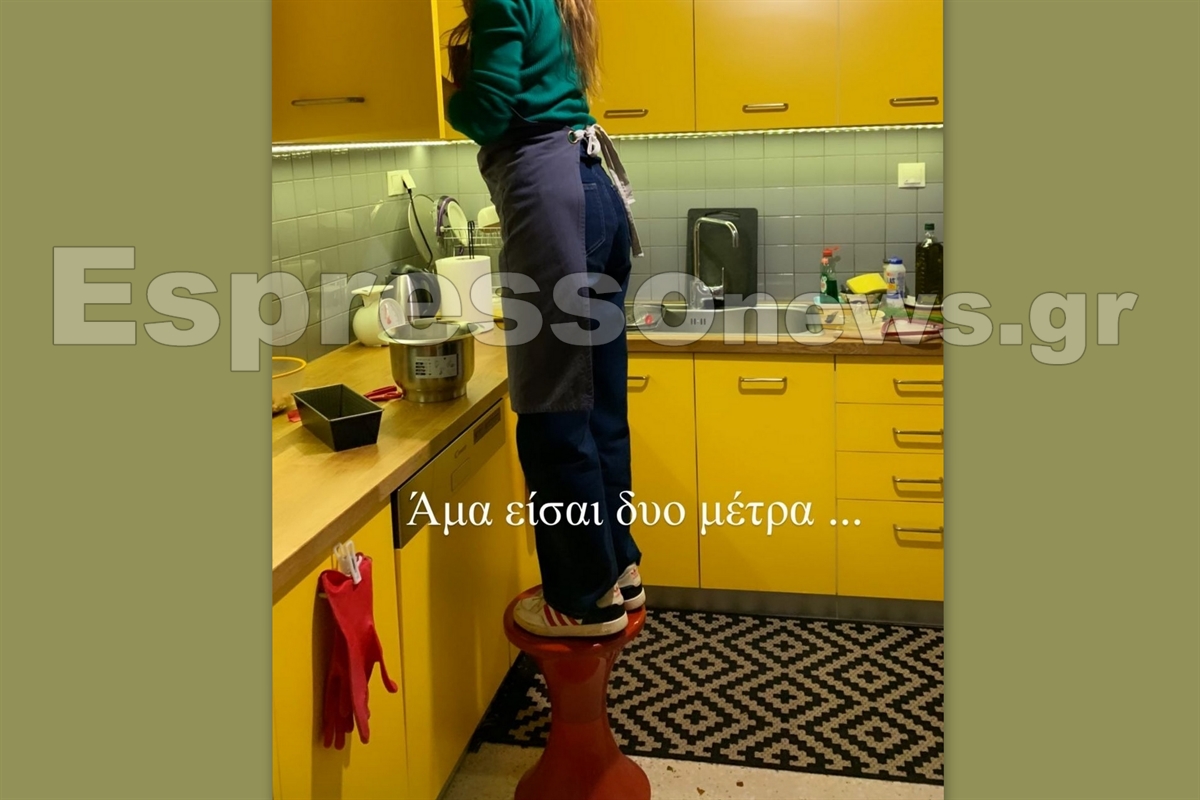 Η μαγειρική τη χαλαρώνει και την ξεκουράζει και όταν βρίσκει χρόνο μπαίνει στην κουζίνα και ετοιμάζει διάφορες λιχουδιές. Η Μυρτώ Αλικάκη αυτοσαρκάζεται και πόσταρε φωτογραφία να ψάχνει στα ντουλάπιά της πατώντας πάνω σε σκαμπό και έγραψε: «Άμα είσαι δύο μέτρα».