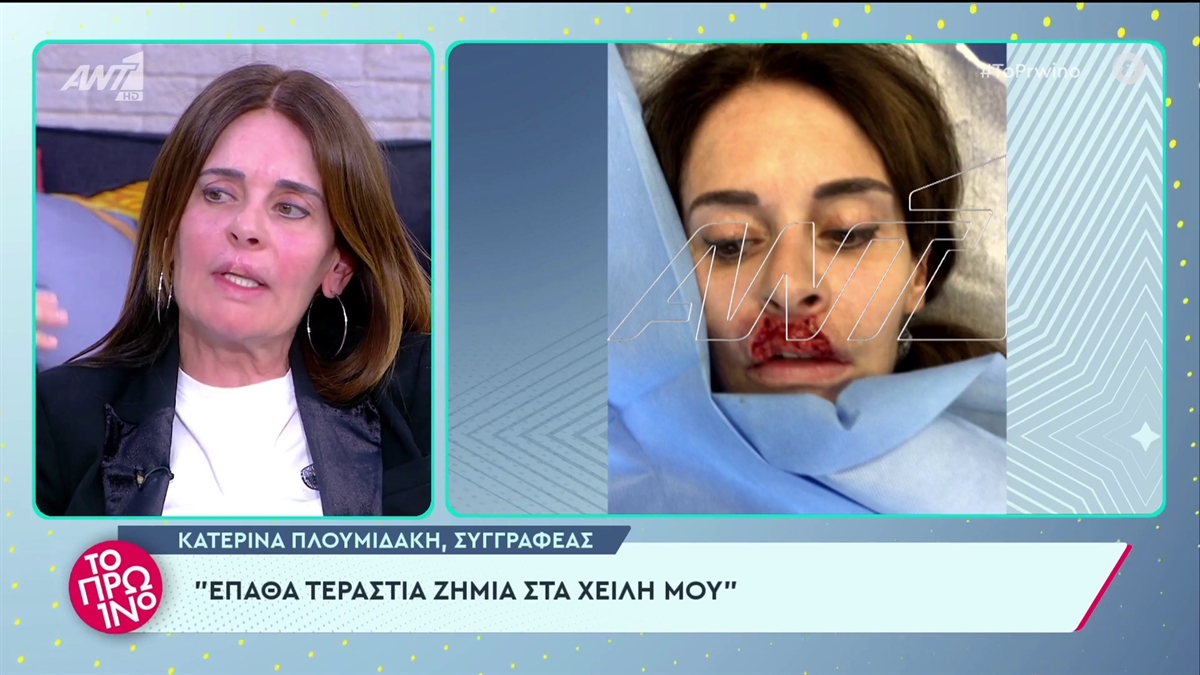 Η συγγραφέας Κατερίνα Πλουμιδάκη καλεσμένη της εκπομπής «Το Πρωινό» συγκλονίζει με τον γολγοθά που πέρασε και περνάει μετά την πλαστική επέμβαση που έκανε στα χείλη της.