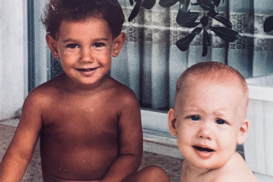 Ο μελαχρινός μπόμπιρας της φωτογραφίας ποζάρει με τον αδελφό του στη βεράντα του σπιτιού τους μερικά χρόνια πριν.