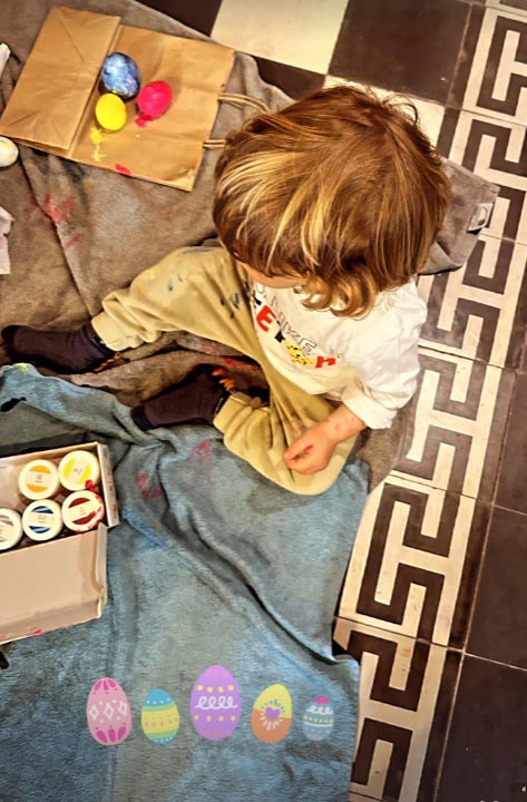 Η Τζένη Μπαλατσινού ανέβασε ένα στιγμιότυπο στον προσωπικό της λογαριασμό στο Instagram με τον 2 ετών γιο της να είναι στο πάτωμα έχοντας μπροστά του χρώματα και ξεδιπλώνει την φαντασία του βοηθώντας στην βαφή των αυγών!