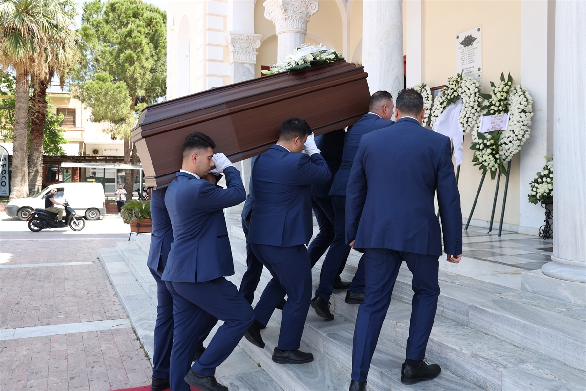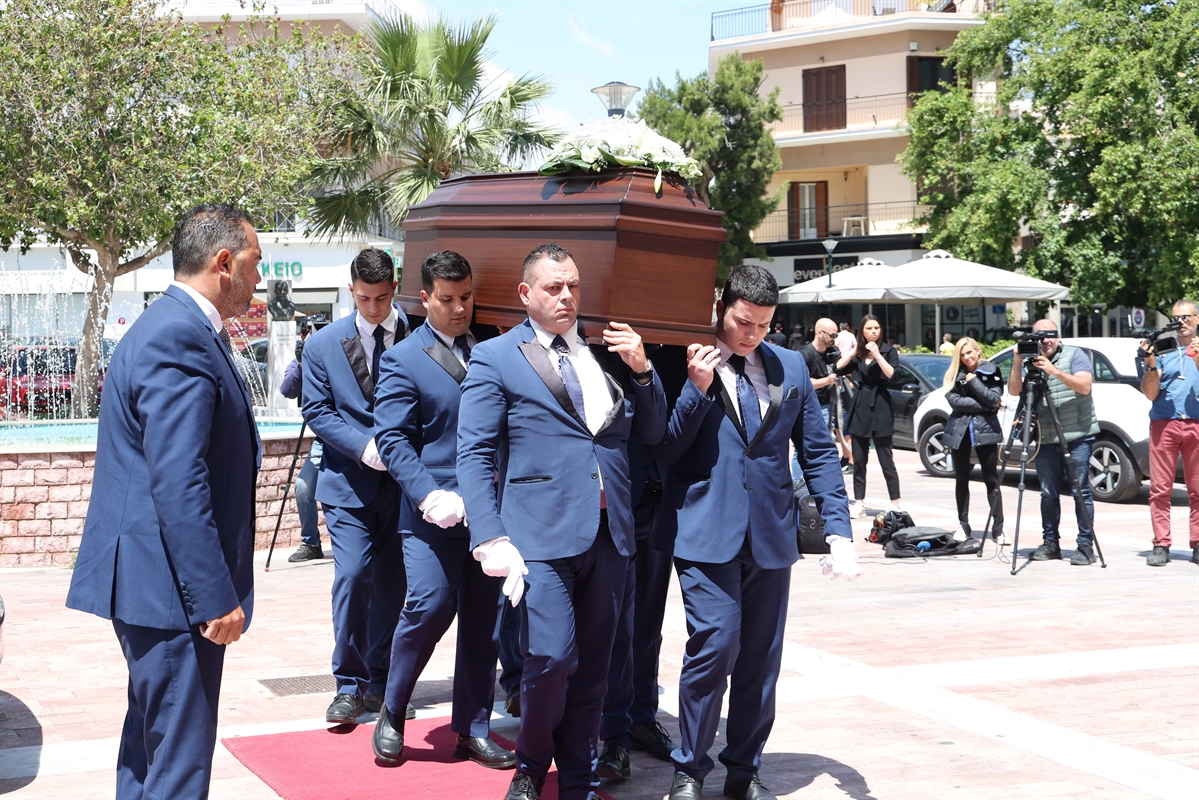 Συντετριμμένοι τα παιδιά και η τελευταία του σύζυγος έφτασαν στην εκκλησία για να υποδεχτούν τη σορό και αργότερα φίλοι και συνάδελφοι έφτασαν στην Κερατέα στον ιερό ναό του Αγίου Δημητρίου.