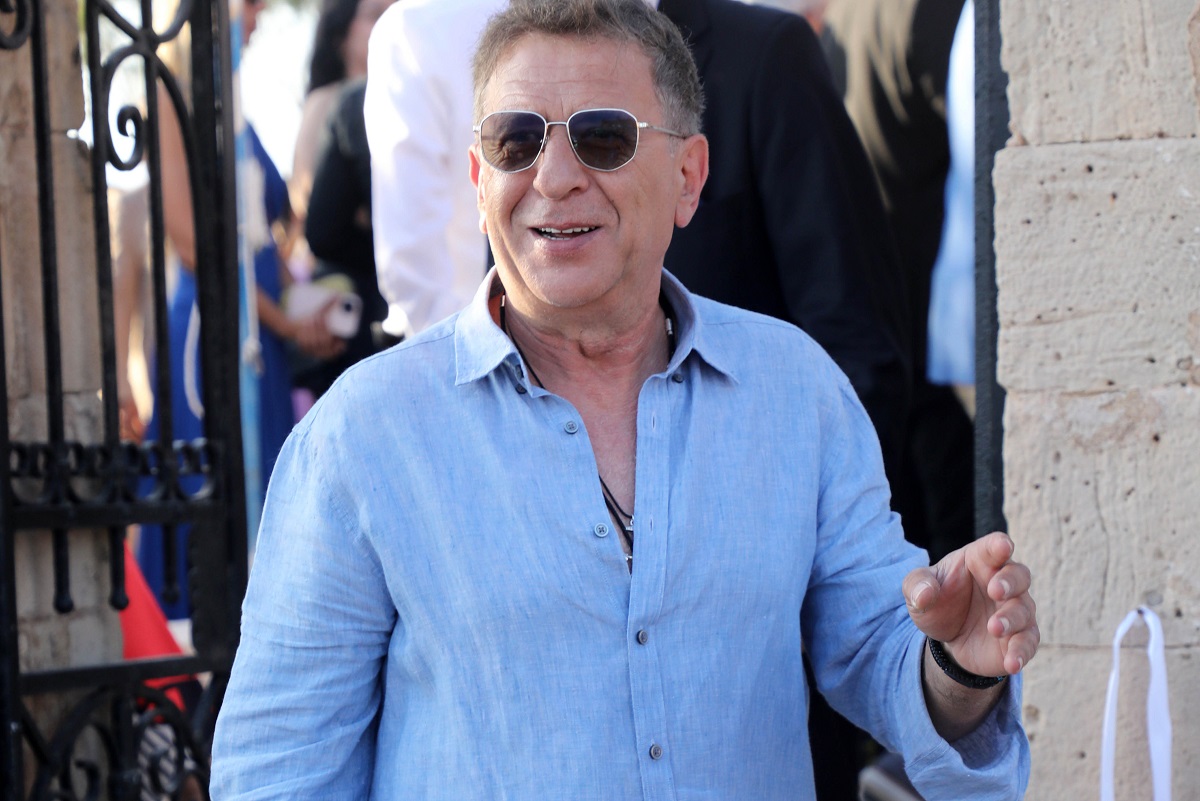 Ο Κώστας Κόκλας πήγε στην Αίγινα καλεσμένος στο γάμο του Πάνου Μουζουράκη και της Μαριλού Κοζάρη παρέα με το γιο του.