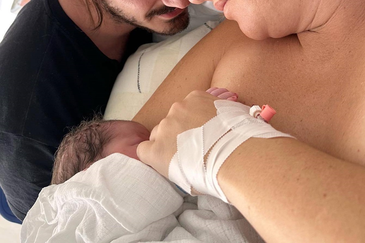 Η ίδια πόσταρε φωτογραφίες μέσα από το μαιευτήριο με τον σύντροφό της, Ορέστη να κρατούν στην αγκαλιά το μωράκι τους και έγραψε: «Σας ευχαριστούμε πάρα πολύ για τις ευχές σας.