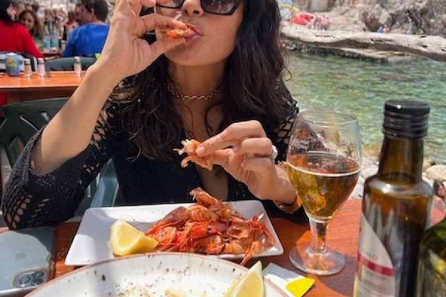 Τις διακοπές της απολαμβάνει η γνωστή ηθοποιός και δημοσίευσε μια φωτογραφία της να τρώει δίπλα στη θάλασσα.