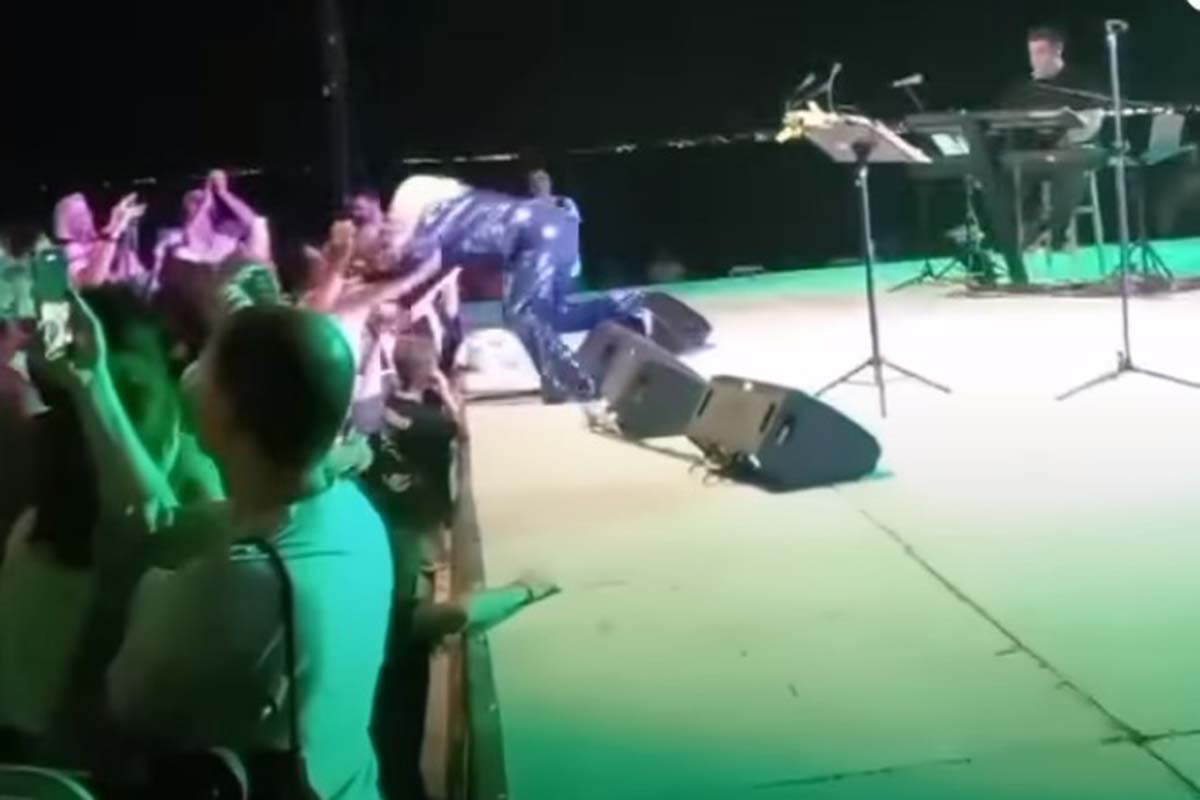 Η πτώση τρόμαξε τους πάντες, ενώ η τραγουδίστρια τραυματίστηκε στο πρόσωπο και μεταφέρθηκε κέντρο υγείας της περιοχής για τις πρώτες βοήθειες.
