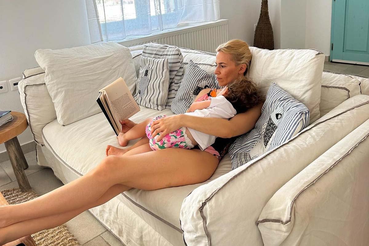 Σε επόμενη ανάρτησή της, η Νάντια Μπουλέ με την κορούλα της βρίσκονται αγκαλιά και διαβάζουν μαζί ένα βιβλίο ενώ η λεζάντα γράφει: «Δεν αντέχεται άλλο η επικαιρότητα. Ανοίγουν τα βιβλία και κλείνουν οι τηλεοράσεις».