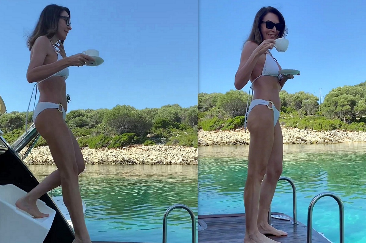 Η παρουσιάστρια το πρωί της Τετάρτης έβαλε το μαγιό της που τόνιζε το καλλίγραμμο σώμα της και απόλαυσε τον καφέ της πάνω στο σκάφος.