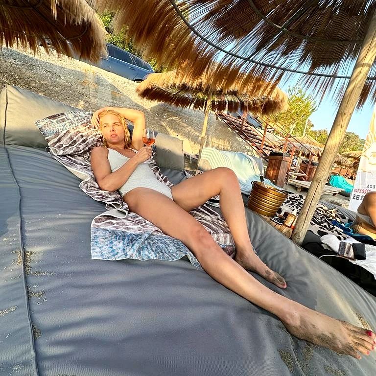 Δημοσίευσε φωτογραφίες να είναι χαλαρώνει σε ξαπλώστρα με ένα ποτήρι κρασί στο χέρι και οι διαδικτυακοί της φίλοι έσπευσαν να της γράψουν διάφορα σχόλια.