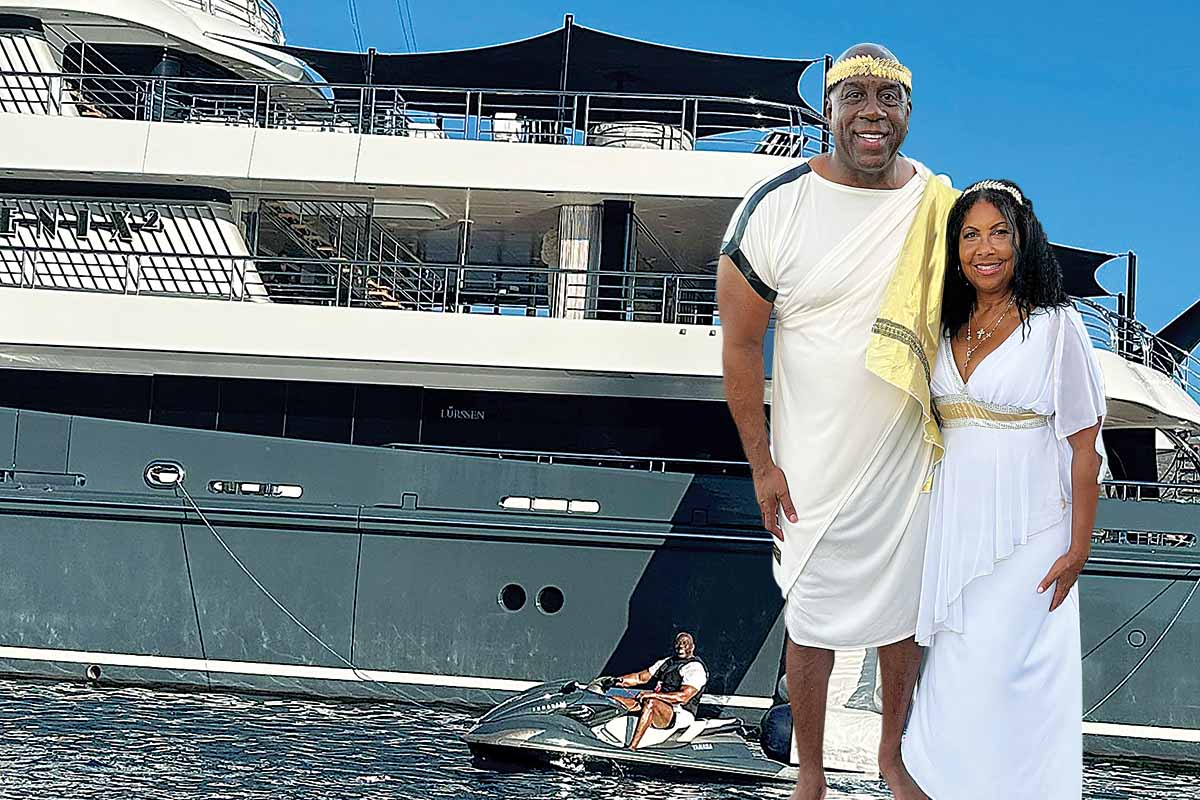 Αρχαίος Ελληνας θεός ντύθηκε ο Μάτζικ Τζόνσον στα ανοιχτά της Κεφαλλονιάς. Μετά τις Κυκλάδες, όπου βρέθηκε τις προηγούμενες ημέρες, ο θρύλος του NBA και η γυναίκα του Κούκι σάλπαραν με υπερπολυτελές γιοτ για το Ιόνιο.